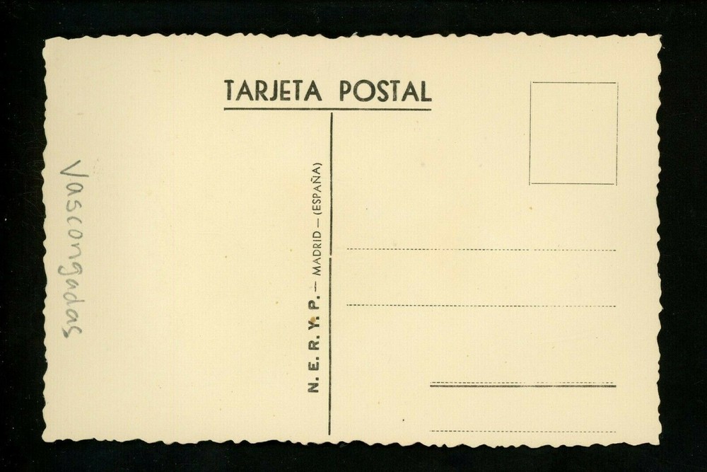 Embroidered Clothing Postcard by Artist M N G Featuring Vascongadas Woman with Umbrella Spain