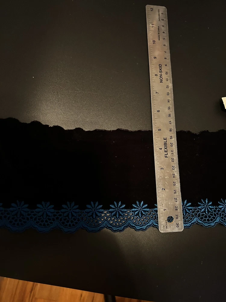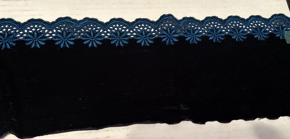 HomeEmbroidered Floral Black Velvet Sewing/Crafts/Skirts/5 " x 64"