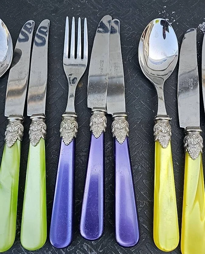 Eme Napoleon Multi Colored Stainless Flatware. Condition is Used. Shipped with USPS Ground Advantage.