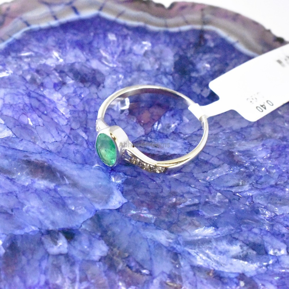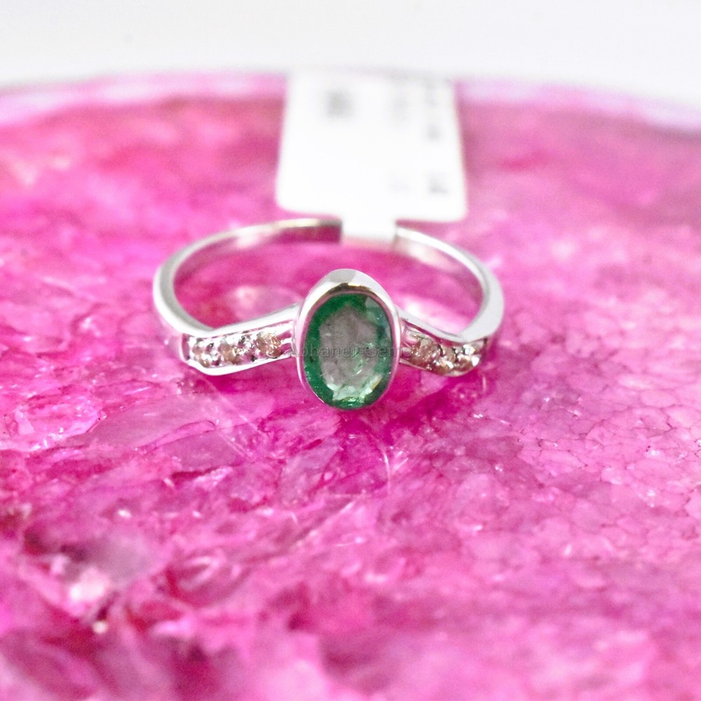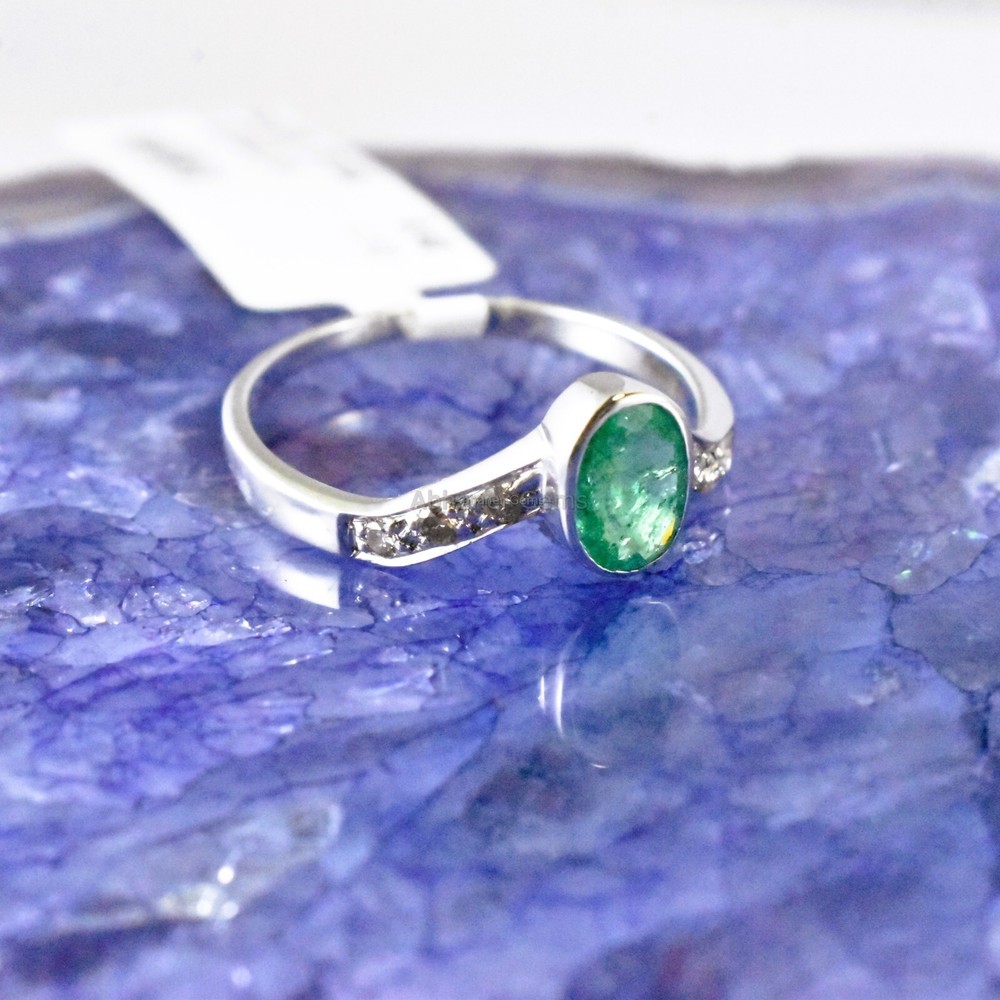 Brand:- ABHANER GEMS Gross Weight:- 1.720gm Gemstone:- Emerald & Diamond Gemstone Shape:- Oval & Round Weight Of Gemstone :- 0.40ct & 0.08ct Ring Size :- All Sizes Available Metal:- 925 Sterling Silver ( We also make in gold so please feel free ask us if you want) Order:- We Take custom And Bulk Orders PLEASE GIVE YOUR OPENION OR FEEDBACK ABOUT THE PRODUCT. Our first rule is to serve the costumer with best we can in the best way possible as we prefer to give the best quality at the most affordable price. Size:-All Size Available as we are factory people we can make any design in any shape with any gemstone you want all you have to do is just tell us what you want and we will serve you with the best we can. please remember we are small manufacturers so we give the best in best price because there is no middle man to cost you extra. Metal:- Most of our jewelry is in 14K , 18K some are also in White Gold and Yellow Gold. we can make make jewelry according to your need. Gemstone :- We use 100% Natural gems stone so you do not have to worry about fake stones. you can get it checked in any laboratory if it is not that we will give you 200% percent money back Making: - we are operating from Jaipur as we here are working from a very long time so we use traditional handmade ways to make most of our jewelry. COSTUMER SERVICE If You Have Any Problem Feel Free To Contact Us anytime you want as we are always here to serve you with the best we can It's a perfect gift for you and your loving ones it's quite comfortable for wearing and suitable for all occasions styles and ages. All the items in my shop are Made in our own factory, you can design your own jewelry and let me make it as your design, In addition, we can make special and meaningful jewelry for you. It is nicely made with love and passion for every buyer and we are proud of our products. SHIPPING INFORMATION All orders are shipped by us within 3-5 business days. as All the items in our shop is Made in our own factory therefore carefully and professionally made as per our Quality Standard, sometimes we need some extra time to produce an item as we believe in costumer satisfaction. Once ready, they will be shipped and we will make you available with the Online Tracking. Shipping takes around then 1-3 weeks to reach you. We will inform you once the item leaves so you can Track it. Each Item is Fully Insured in Transit so please do not worry about damage or loss. You are Covered. PAYMENT INFORMATION We accept all the available Payments for your convenience. Please contact us if you wish to Get a support or help.