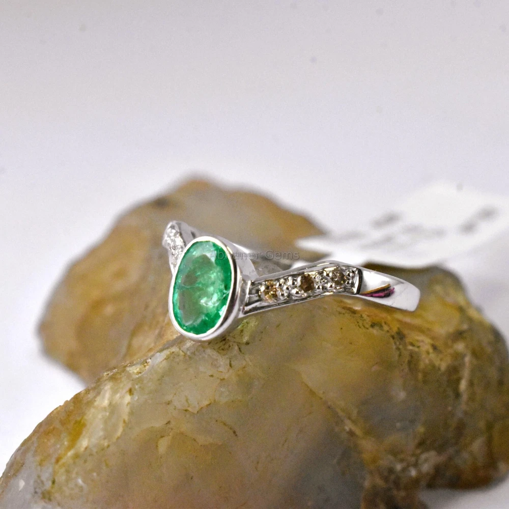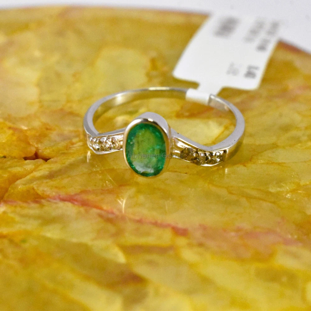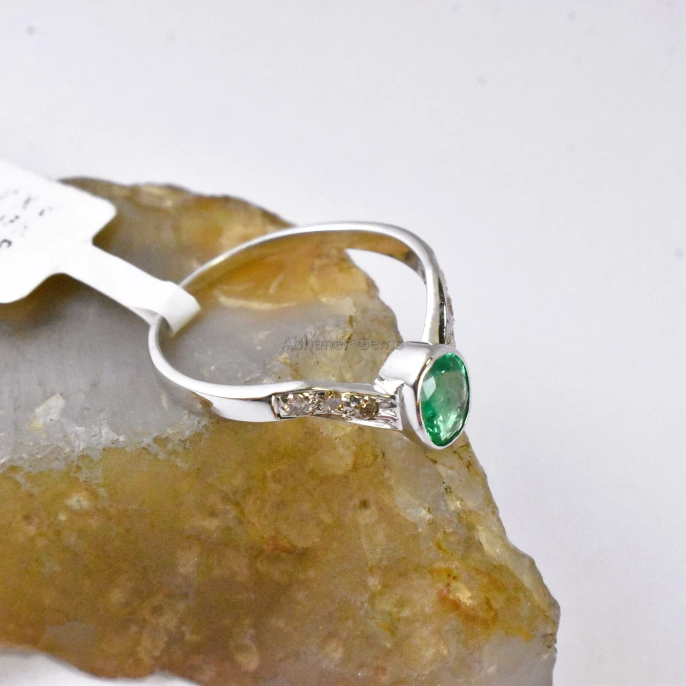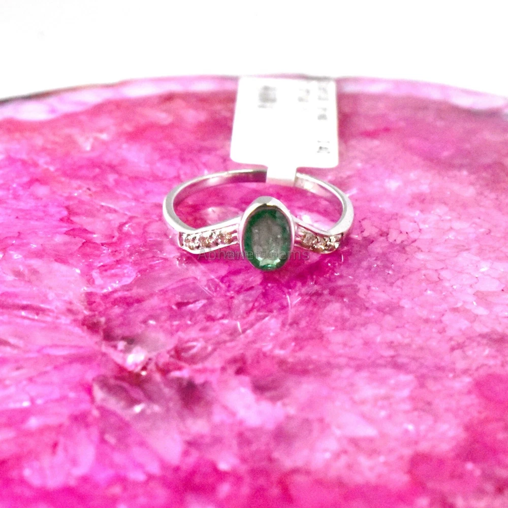 Brand:- ABHANER GEMS Gross Weight:- 1.720gm Gemstone:- Emerald & Diamond Gemstone Shape:- Oval & Round Weight Of Gemstone :- 0.40ct & 0.08ct Ring Size :- All Sizes Available Metal:- 925 Sterling Silver ( We also make in gold so please feel free ask us if you want) Order:- We Take custom And Bulk Orders PLEASE GIVE YOUR OPENION OR FEEDBACK ABOUT THE PRODUCT. Our first rule is to serve the costumer with best we can in the best way possible as we prefer to give the best quality at the most affordable price. Size:-All Size Available as we are factory people we can make any design in any shape with any gemstone you want all you have to do is just tell us what you want and we will serve you with the best we can. please remember we are small manufacturers so we give the best in best price because there is no middle man to cost you extra. Metal:- Most of our jewelry is in 14K , 18K some are also in White Gold and Yellow Gold. we can make make jewelry according to your need. Gemstone :- We use 100% Natural gems stone so you do not have to worry about fake stones. you can get it checked in any laboratory if it is not that we will give you 200% percent money back Making: - we are operating from Jaipur as we here are working from a very long time so we use traditional handmade ways to make most of our jewelry. COSTUMER SERVICE If You Have Any Problem Feel Free To Contact Us anytime you want as we are always here to serve you with the best we can It's a perfect gift for you and your loving ones it's quite comfortable for wearing and suitable for all occasions styles and ages. All the items in my shop are Made in our own factory, you can design your own jewelry and let me make it as your design, In addition, we can make special and meaningful jewelry for you. It is nicely made with love and passion for every buyer and we are proud of our products. SHIPPING INFORMATION All orders are shipped by us within 3-5 business days. as All the items in our shop is Made in our own factory therefore carefully and professionally made as per our Quality Standard, sometimes we need some extra time to produce an item as we believe in costumer satisfaction. Once ready, they will be shipped and we will make you available with the Online Tracking. Shipping takes around then 1-3 weeks to reach you. We will inform you once the item leaves so you can Track it. Each Item is Fully Insured in Transit so please do not worry about damage or loss. You are Covered. PAYMENT INFORMATION We accept all the available Payments for your convenience. Please contact us if you wish to Get a support or help.