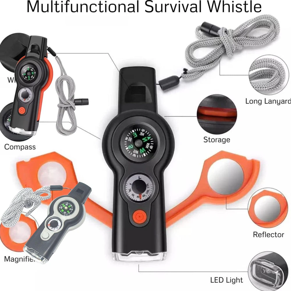 Emergency Survival Gear Camping Hiking Whistle Compass Thermometer Bullet Points: Whistle for Survive: Outdoor Survival Whistle contains everything you need to stay safe and survive. Gain peace of mind knowing that you and your family are prepared for survival. A must-have tool for any survival enthusiast. Superior Material: Camping Safety Whistle is made of excellent ABS material, which is durable, well-designed, drop-resistant, scratch-resistant, lightweight, loud, convenient, and practical. Ideal Survival Whistle: Safety Whistle Survival features functions of Whistle, Compass, LED Light, Magnifying Glass, Reflector, LED Signal Light, Lanyard, and Sealed Storage Compartment. Simple and practical. You can put your own life-saving strip in it before you go out. Fabulous Gift: Are your holiday presents ready? Hiking Whistle Safety Whistle is a fabulous gift for Thanksgiving, Christmas, New Year, and birthdays to your family, friends, relatives, and colleagues! Widely Used: There is a wide range of applications for Outdoor Survival Loud Whistle, such as biking, skiing, camping, hiking, jogging, fishing, hunting, adventures, bushwalking, swimming, etc. Description: Outdoor Survival Whistle is well-designed, lightweight, portable, and practical. Great for camping, hiking, jogging, fishing, hunting, adventures, bushwalking, swimming, or any other type of outdoor activity. Function: 1. Standard high-decibel survival whistle 2. North (South) needle (high accuracy, clear at a glance) 3. High precision thermometer (Faster and more accurate to grasp the current temperature at the first time) 4. Survival reflective signal mirror (Use the principle of sunlight reflection to explain your current location to those who come forward to search and rescue) 5. Tinder magnifying glass (In the absence of fire in the wild, the principle of sunlight focusing on a magnifying glass can be used to refract sunlight onto dry grass and leaves to generate fire. 6. High cool light LED flashlight (Under the premise that there is no light in the field, the lighting system and LED bulb have a lifespan of 10,000 hours) 7. storage tank (You can put your own life-saving strip in it before you go out: write your name, address, phone number, blood type, etc. so that the rescuers can grasp your situation at the first time) Specification: Product name: 7 in 1 Whistle Color: Orange. grey Weight: 53 grams (including packaging) Packing size: 12*6.2*3cm/4.72*2.44*1.18in Packing List: Survival Safety Whistle*1 1.You can make a Credit payment via Paypal.Paypal will let you use MasterCard,Visa to pay. 2.Payment should be completed within 5 days after auction closed, or unpaid dispute will be filed for an closing auction.An unpaid case will be filled after 4 days. ● We strive for 100% customer satisfaction ! ● Positive Feedback is very important to us. ● We hope that you contact us immediately BEFORE you give us neutral or negative feedback, so that we can satisfactorily address your concerns. ● We promise to offer the lowest price and high quality produce. Dear buyers : ● Welcome to my store ! ● Your satisfaction is our top goal,we appreciate your patronizing. ● If you have any questions, please contact us before leave negative or neutral feedback, we will try our best to solve the issue to your satisfaction, thanks ! ● If you are satisfied with our service, please rate the details of the transaction (Detailed Seller Ratings) on eBay. ● Please always talk to us via ebay Message. ● We appreciate your business and look forward to growing our e-Bay sales with satisfied customers.