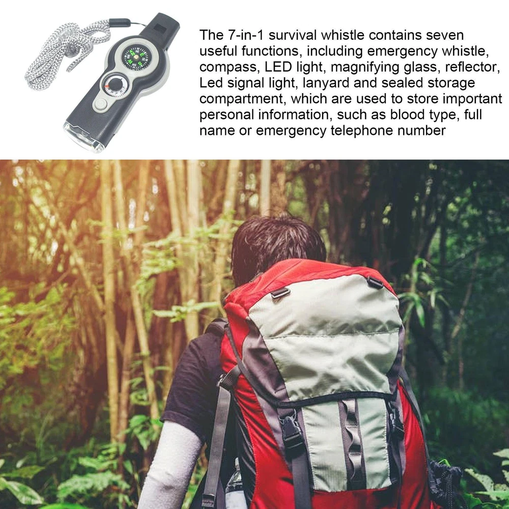 Emergency Survival Gear Camping Hiking Whistle Compass Thermometer