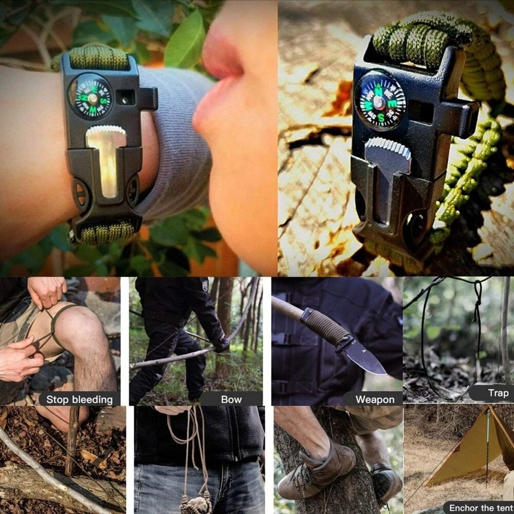 Professional emergency survival kits contain: Multifunction pliers, survival knife, Spoon fork knife,upgrade compass carabiner, 11 in 1 multifunctional plier, wire saw, survival bracelets, emergency thermal blanket, EDC survival tool card, scraper, 3 modes tactical flashlight, fishing hook, line, bait, 6 in 1 camping utensils, whistle, USB LED mini light, capsule case, black waterproof box and so on. Perfectly fits for people who love hiking, hunting, wilderness survival, etc. Great gift idea for father, boyfriend, Christmas, birthday, father days. Survival knife for outdoor emergency use 4 in 1 survival bracelets wristbands Spoon fork knife with whistle Tactical flashlight with 3 modes Multifunctional folding pliers Wire saw 10 in 1 EDC Survival card Thermal blanket Pocket bellow Tactical pen Compass Scrapter ( as mailing range, there are no fire starter) USB Mini LED Light Capsule case Survival whistle Fishing hook, fishing line,fishing bite Packing included