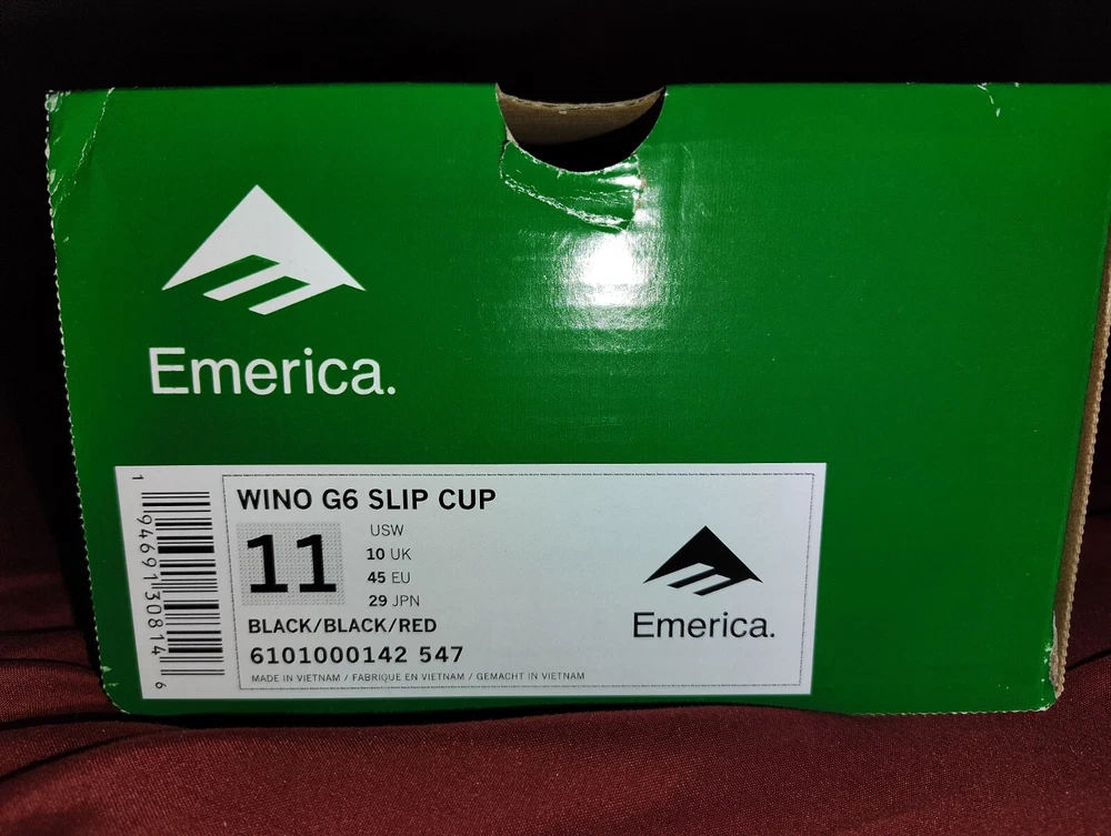 Emerica Wino G6 Slip Cup Black/Black/Red Size 11 Brand New In Box. Condition is New with box. Shipped with USPS Ground Advantage.