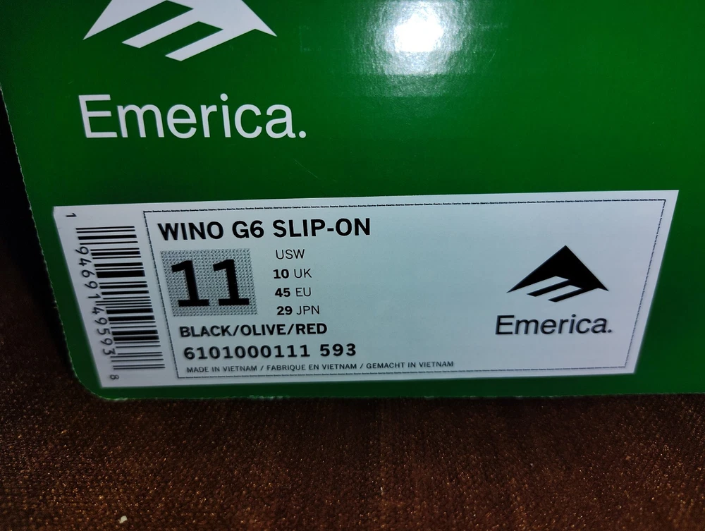 Emerica Wino G6 Slip On Black/Olive/Red Braden Hoban Colorway Size 11 Brand New. Condition is New with box. Shipped with USPS Ground Advantage.
