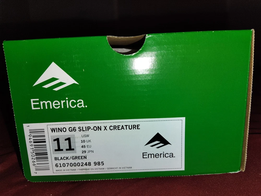 Emerica Wino G6 Slip On x Creature Black/Green Size 11 Brand New In Box. Condition is New with box. Shipped with USPS Ground Advantage.