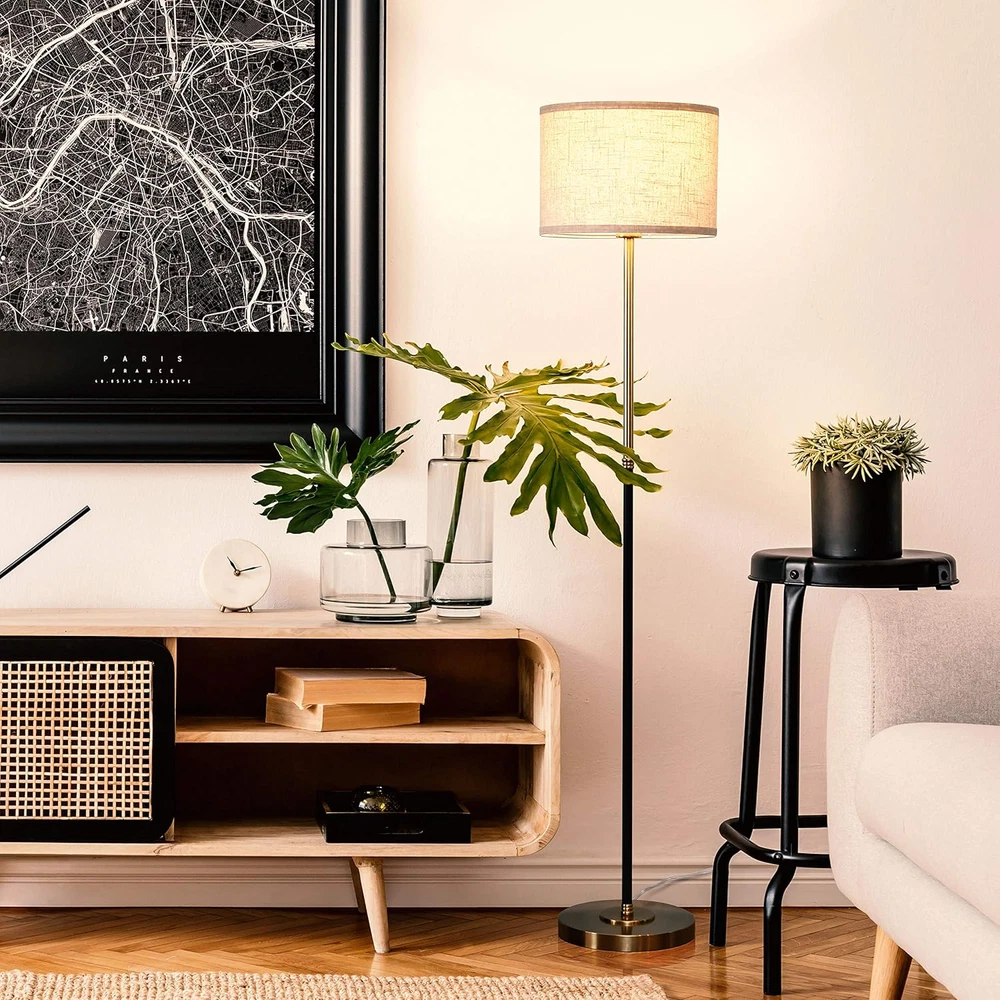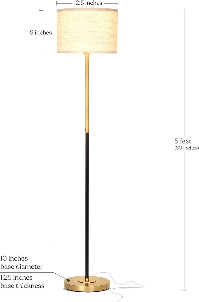 Store New Arrivals Add to Favorite View Feedback Contact Emery LED Floor Lamp, Mid-Century Standing Lamp for Bedroom Reading, Modern Lamp for Living Rooms & Offices, Great Living Room Décor, Tall Lamp with Drum Shade & Brass Finish Description Light Source Type LED Style Mid Century Modern Number of Items 1 Power Source Corded Electric Number of Light Sources 1 Control Method Touch Batteries Included? No Lighting Method LED Mounting Type Tabletop Lamp Type Floor Lamp Number of Pieces 1 Room Type Living Room Bulb Shape Size T6 1/2 Installation Type Tabletop,Freestanding Product Dimensions 12.5"D x 12.5"W x 60"H Material porcelain, metal, Brass Efficiency Energy-efficient Finish Type Shiny Specific Uses For Product Reading Indoor/Outdoor Usage Indoor Water Resistance Level Not Water Resistant Batteries Required? No Item Weight 5.14 Kilograms Connectivity Technology USB Connectivity Protocol Homeplug Special Features Energy Efficient Special Feature Energy Efficient Shade Height 49 Inches Shade Color beige Color Temperature 3000 Kelvin Color Beige Wattage 9.5 watts Is Cordless? No Base Material Brass Is Waterproof False Shape Drum Voltage 110 Volts Recommended Uses For Product Reading Shade Material Linen Finish types Shiny Included Components Bulb included Switch Type Rotary Stylish Floor Lamp With Drum Lamp Shade: It’s time to upgrade your bedroom with the sophisticated touch of this elegant drum shade uplight. If you've been looking at lamps for living rooms, this Emery lamp is the perfect option. Use the lamp for the bedroom as the bedside lamp and be treated to a light that is the perfect brightness. You can set this tall lamp at a point further away from you so that you have greater shade and a nice, soft, warm light ambiance. Stable And Safe Lamp For Kids' Room: The Brightech Emery floor lamp will add sophistication and an air of luxury to your bedroom, living room, or office with its simple lines and gold (aka brass) finish. With a compact and soft canvas shade and traditional design, this tall lamp will suit any sort of living room décor, from classic to contemporary. This stylish, sleek, and beautiful standing lamp makes a great addition to any home. Long-Lasting and Energy-Saving Standing Lamp: This Brightech floor lamp comes with an 800-lumen LED bulb that produces a 3000K warm white color while only using 9.5W. LEDs are more efficient than halogen or incandescent bulbs, making this lamp a great choice for the environment and energy savings! The LED bulb will last for up to 20,000 hours, which is about 20 years at 3 hours a day. You shouldn’t have to replace a bulb, and since LEDs don’t produce heat, you can avoid accidental burns. Smart Device Compatible Tall Lamp: The Emery standing lamp works great with smart devices. You must have the smart outlet as well (sold separately). With smart devices, you can create the perfect ambiance in your bedroom or office to work best with your decorations. This Brightech Emery floor lamp will provide a shaded, soft glow that will calm you and be welcoming. The Warranty: Our floor lamps are built to last, and we stand behind that. That's why Brightech USA offers an industry-leading 3-year warranty covering defects, malfunctions, or sudden failures to your standing lamp when purchased through us. Thanks to our friendly USA-based support team, you'll rest easy knowing your floor lamp has the backing you can trust. Product Description UNIQUE, ELEGANT BEDROOM FLOOR LAMP FOR READING OR SOFT, MOOD LIGHTING - Give your bedroom a classy touch with an elegant, drum shade uplight. Use it at bedside lamp for a bright but not overwhelming reading light. Place the Brightech Emery a little further away so the shade's effect is greater and you have a nice ambience with soft, warm white light. UPRIGHT BRASS MODERN FLOOR LAMP SUITS RANGE OF ROOM DECOR : The Brightech Emery adds a touch of elegance to your living room, bedroom or office with a gold (aka brass) finish and simple lines. Its soft compact canvas shade and classic design elegantly pair with 90% of decor styles from mid century modern to traditional or contemporary décor. This stylish, sleek, and beautiful lamp makes a great addition to any home. ALEXA COMPATIBLE FREE STANDING UPLIGHT - HEAVY BASE MAKES IT SAFE FOR KIDS' ROOMS - The Brightech Emery works with Alexa / Echo, Google Home Assistant & Apple Homekit (Siri) to turn on/off. (Requires smart plug sold separately.) The heavy base makes this lamp very unlikely to tip, even if knocked by kids or pets, a feature helpful in general and especially for guest rooms. 20 YEAR LIFE WARM WHITE LED BULB INCLUDED : This Brightech lamp includes a 800 lumen LED bulb, drawing 9.5W. That's comparable to a 60W incandescent, so you save 85% of the electric bill of an incandescent. The bulb lasts 20,000 hours, which works out to a 20 year life with normal use (about 3 hours / day) - you never have to replace a bulb. Since LED doesn't get hot, it also avoids accidental burns if you touch the light. Light color: 3000K warm white. A THOUGHTFUL GIFT FOR EVERY STAGE OF LIFE Searching for a remarkable gift? Look no further! Our floor lamps are the ideal gift for students, mothers, fathers, partners, spouses, children, kids, or parents for Back to School, Off to College, Graduation, Halloween, Christmas, Birthday, Winter Holiday, Mother's Day, Father's Day, Wedding, Anniversary and Business Achievement ABOUT US We offer the best prices around on high quality products. Our E-store includes media such as books, movies, music and games while offering electronics, toys, sporting apparel, clothing, tools, general home, garden items and more. SHIPPING We are always working hard to ensure your package arrives as soon as possible. Please understand that some factors like weather, high postal traffic, and the performance of shipping companies are outside of our control. We offer free shipping to the lower 48 states and ship within 2 business days of payment, usually soo