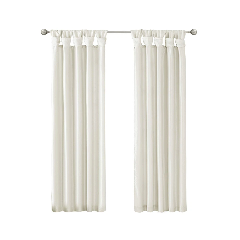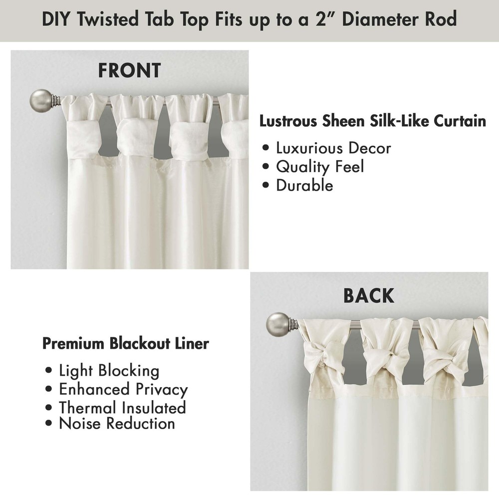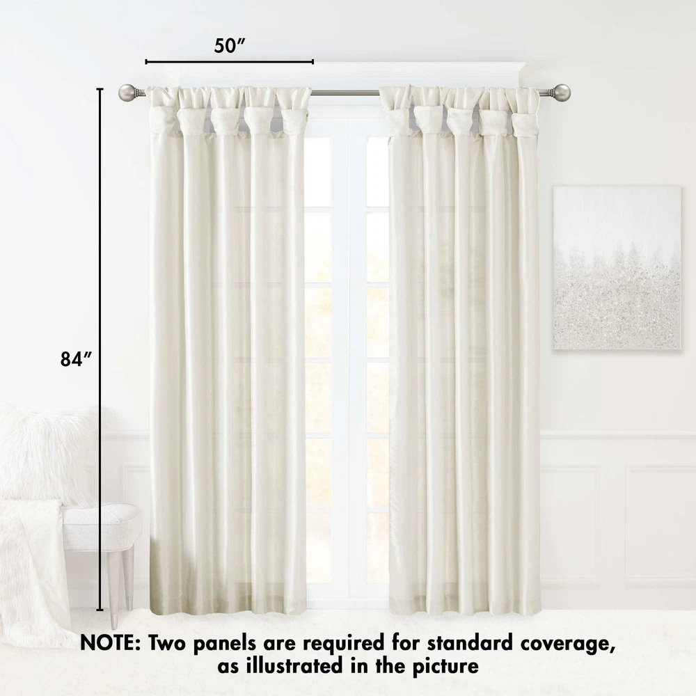 NEW & TRENDY - Give your home a decorator’s touch with the Emilia Window Curtain. Made from a faux silk fabric, this elegant window curtain features a DIY twist tab top. the luxurious sheen and rich navy tone provides a touch of sophistication to your decor. Easy to hang, this twist tab top curtain turns any room into a gorgeous getaway. PRIVACY – These living room curtains feature a back lining for enhanced privacy and improved drapability. The lining also boosts their ability to dim incoming light, creating a cozy room-darkening effect for a more inviting ambiance TWISTED TAB - This elegant bedroom window curtain features a DIY twist tab top finish that not only creates rich, deep folds for a professional look, but also makes this panel easy to hang, open and close MEASUREMENT - 1 Window Panel: 50"W x 84"L As shown in image - Need to purchase 2 curtain panels for each window for standard coverage. CARE - Machine wash cold on gentle cycle, tumble dry on low heat, wash alone, do not bleach