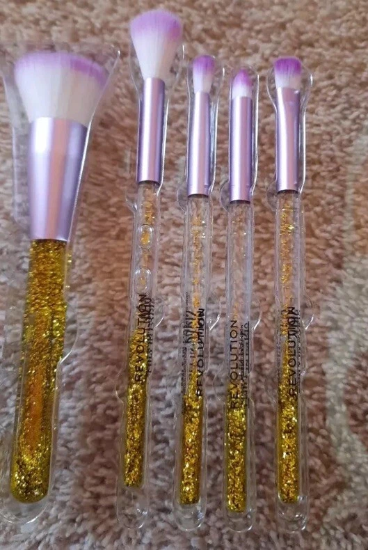 HomeEmily In Paris Tres Chic 5-Pc Gold Glitter Makeup Brush Set By Makeup Revolution