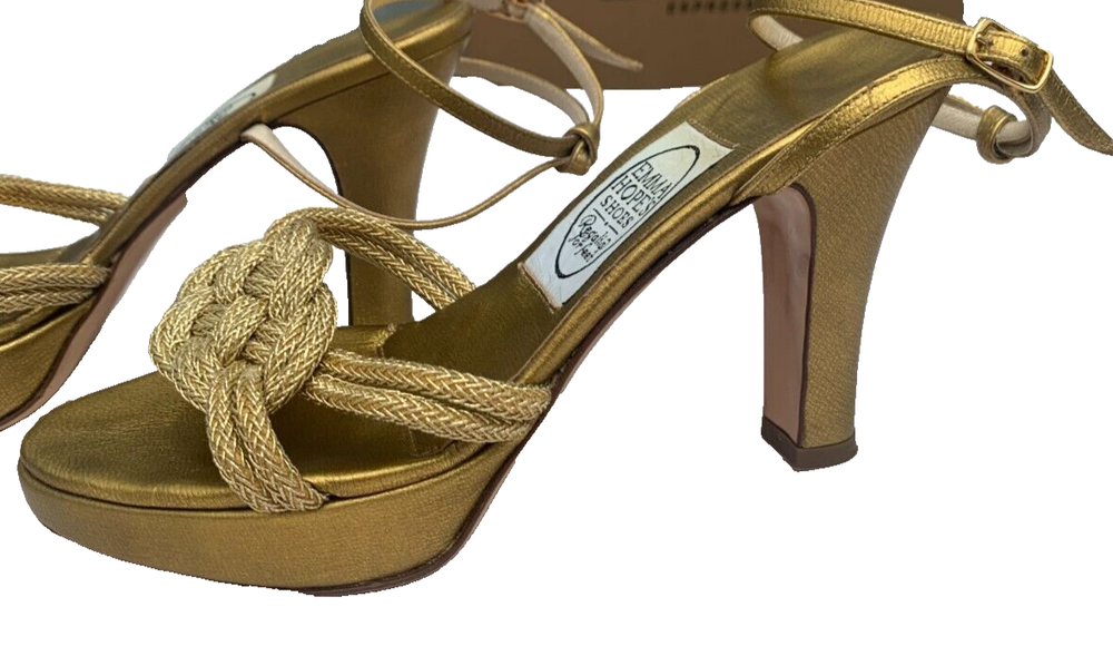 Colour: Gold Department: Women Type: Heel Upper Material: Leather and Metal EU Shoe Size: 37.5 Brand: Emma Hope AU Shoe Size: 37.5 Theme: Metal Country of Origin: Italy Vintage: Yes Style: Platform