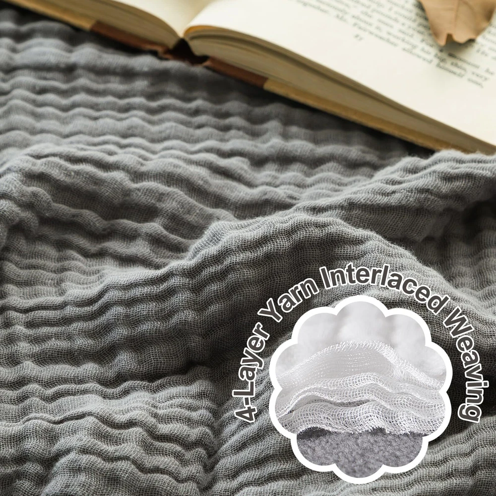 【Stylish Design】 With its lovely design and a wide range of colours to choose from, this blanket is perfect for adding style and comfort to your home; You are sure to find the perfect blanket for your space 【Skin friendly】The muslin throw blankets for adult are easy to clean and dry quickly, with a skin-friendly texture that is non-irritating and odorless for a healthier use; It provides a safe and protective layer for adults, making it the perfect throw blanket for any cozy night; Due to the long distance transportation bubble structure may be reduced, after you wash it, it will return to its original shape and become fluffier and softer 【Soft & Breathable】Due to its design concept and manufacturing process, the cotton blankets are lightweight and breathable, yet has good absorbency and strong wear resistance; It is soft and not stiff to the touch, providing a comfortable sleep while preventing overheating; Great summer blanket! CARE INSTRUCTION: Machine wash COLD; Gentle cycle only; Hang FLAT to dry out or tumble dry on LOW if needed; Do not iron; Do not bleach