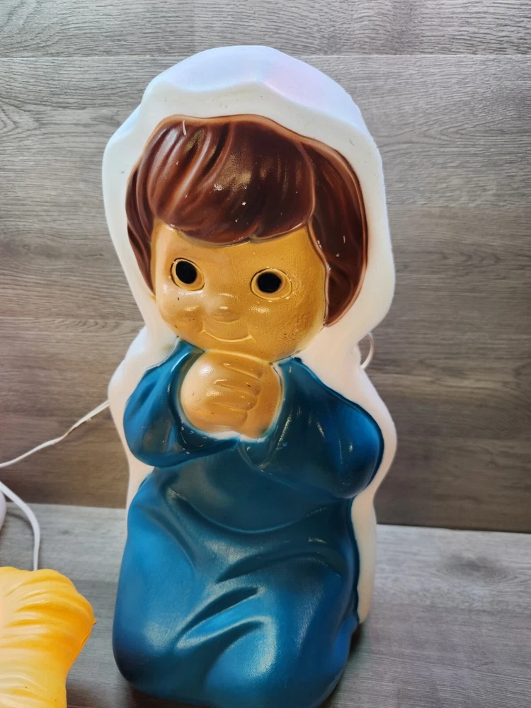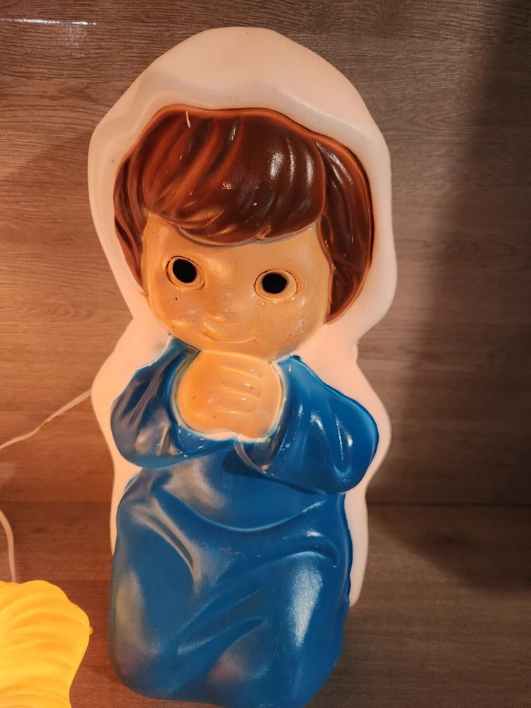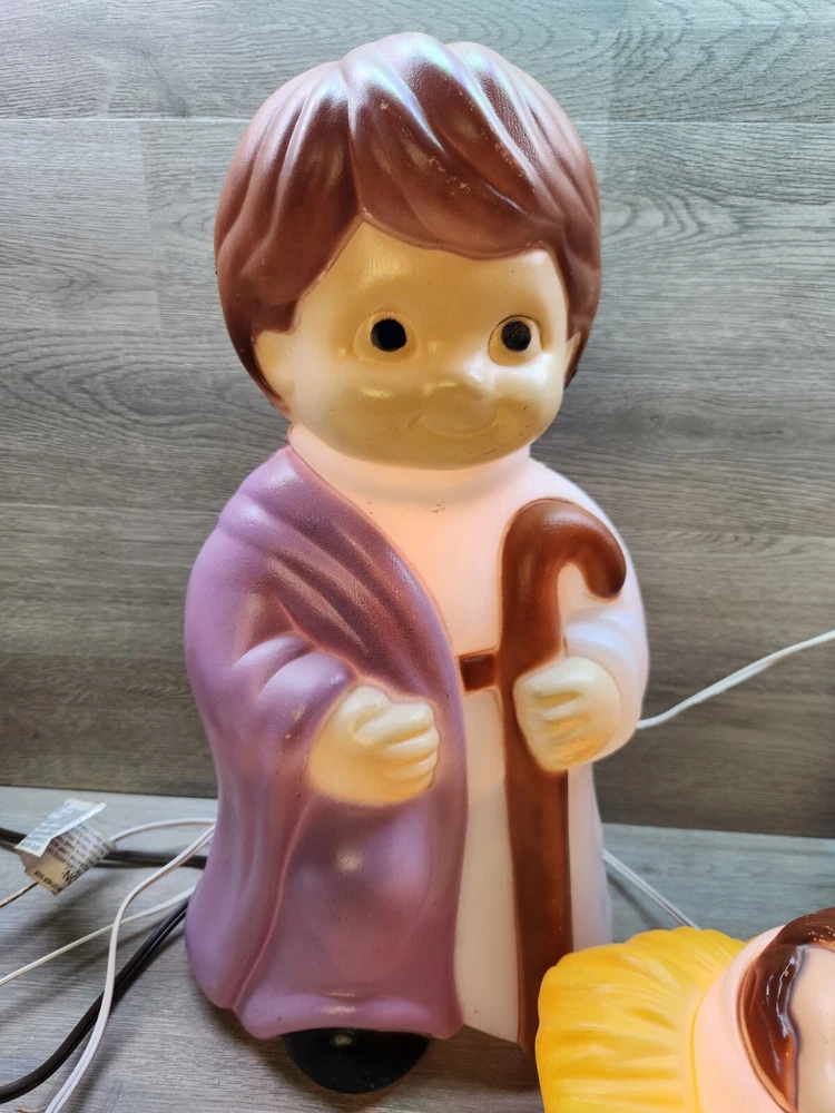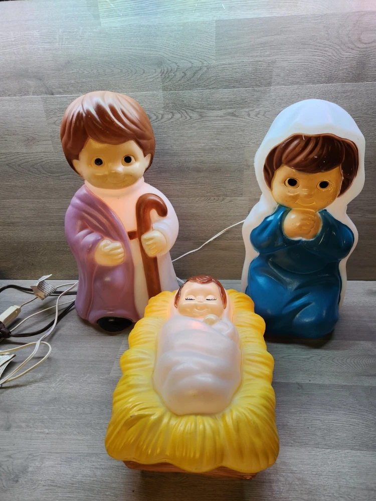 Empire Blow Mold Lighted Child Nativity 3pc Set Christmas Joseph Mary & Jesus