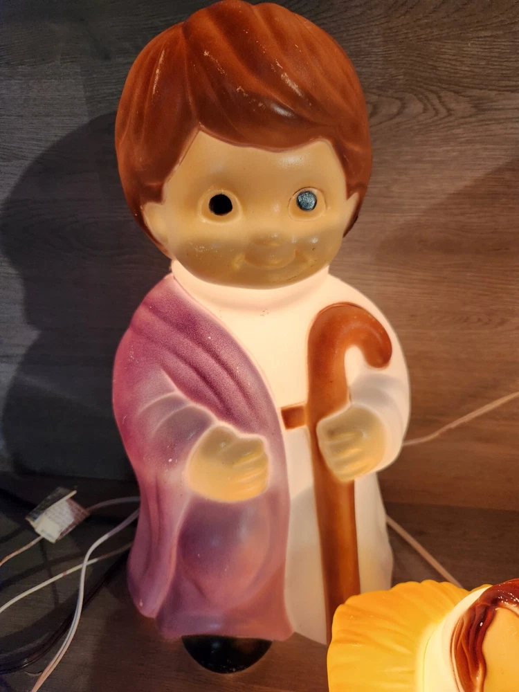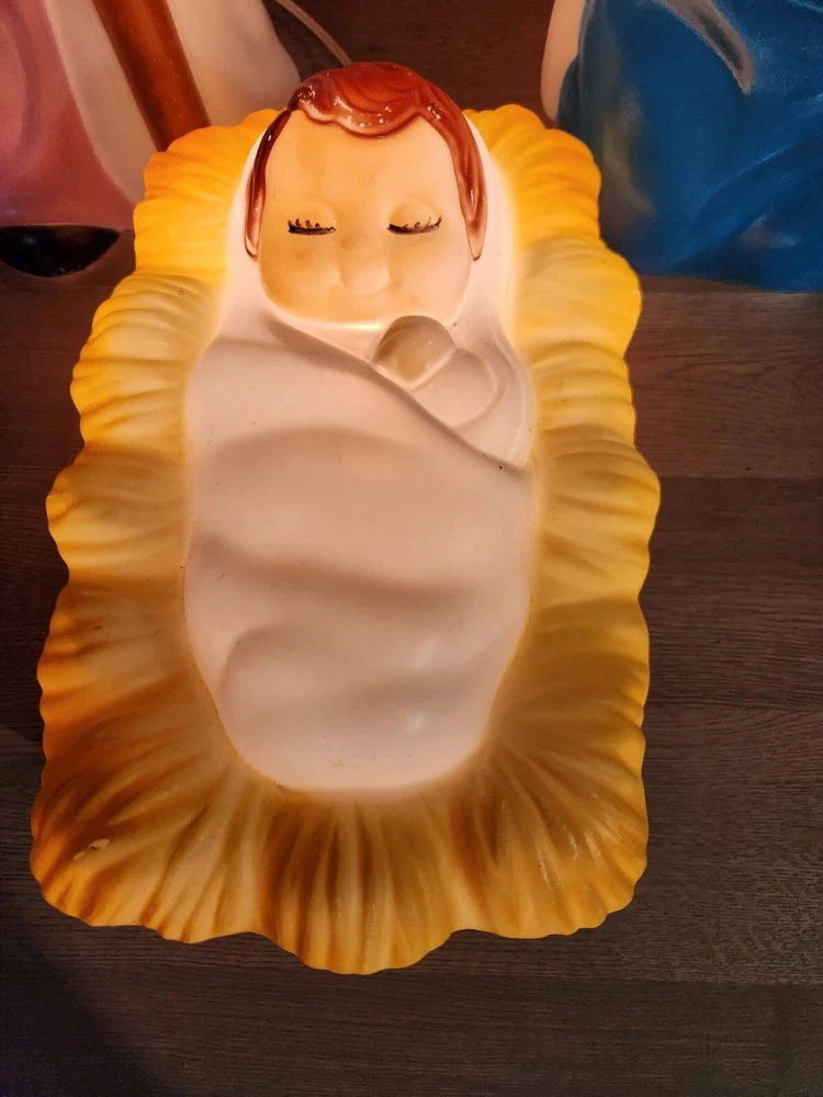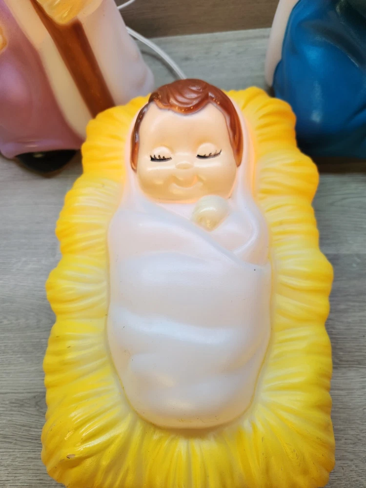 Care Instructions: Clean with Dampen Cloth, Clean with Warm Water, Easy Care Theme: Religious Franchise: Empire Color: Multicolor Country/Region of Manufacture: United States Finish: Matt Shape: Silhouette Power Source: Corded Year Manufactured: 1996 Type: Nativity Brand: Empire Subject: Jesus Indoor/Outdoor: Indoor & Outdoor Pattern: All-Over Size: Medium Time Period Manufactured: 1990-1999 Handmade: No Features: Blow Mold Style: American Character: Jesus Area of Use: Balcony, Lawn, Porch Original/Licensed Reproduction: Original Occasion: Christmas