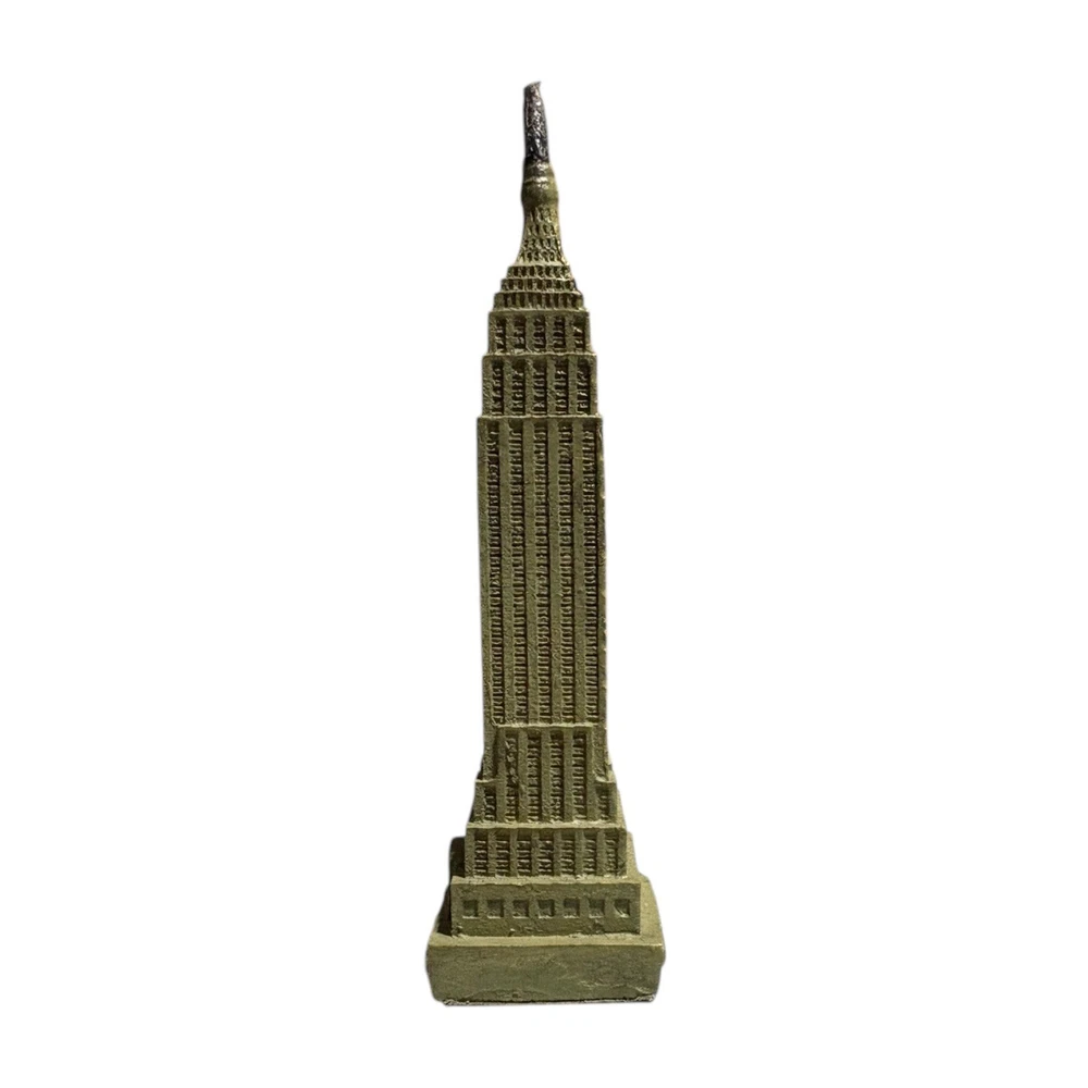 Empire State Building Figurine - Empire Souvenirs Inc - New York - Resin - 3.75" Details: -Felted base -Miniature replica -'Empire State Building' on front side -'New York' on back side -Colors: Green, gold, silver/grey Measurements: -Length: Approximately 1" inch -Width: Approximately 1" inch -Height: Approximately 3 3/4" inches Condition: -Good, pre-owned condition. Minimal external wear. Keywords: empire state building miniature, vintage new york souvenir, nyc landmark replica, vintage desk display, new york travel memorabilia, tourist landmark figurine, vintage nyc gift shop item