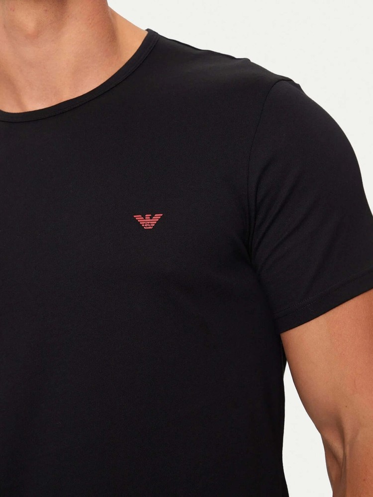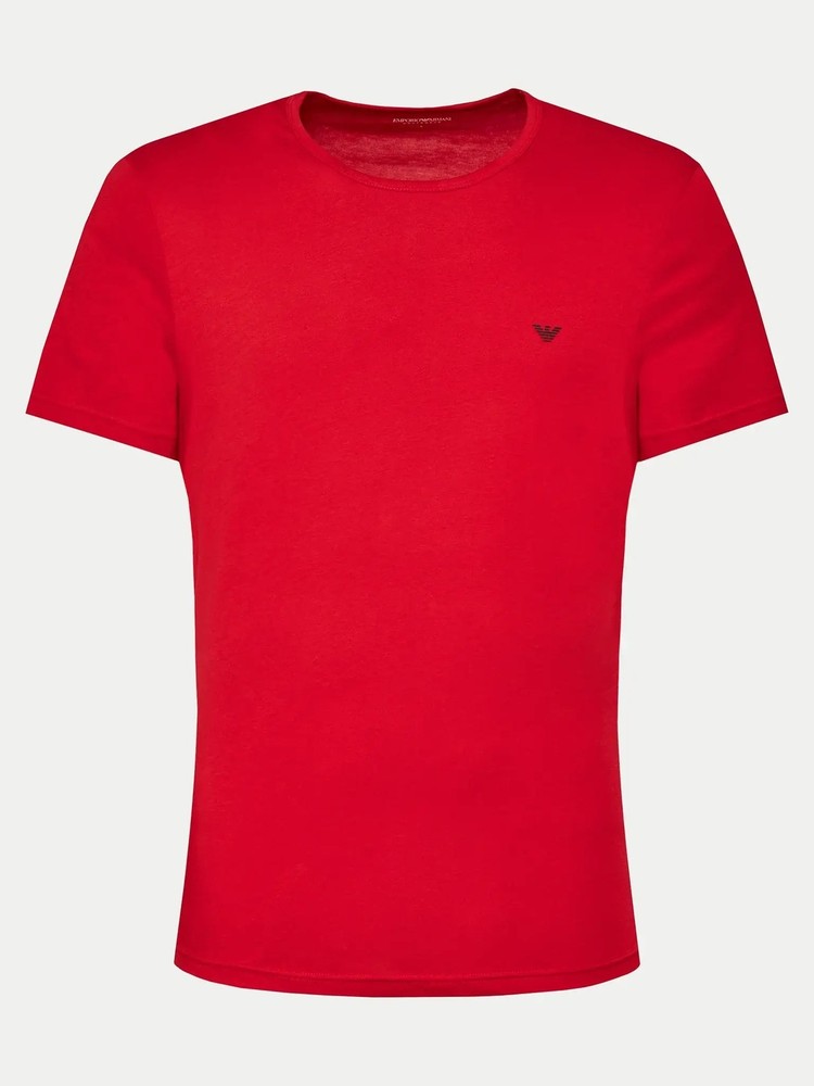 The Emporio Armani 2 Pack Lounge Crew Neck T-Shirts in Red/Black, showcasing a logo on the chest. Made with stretch-cotton, these regular-fit t-shirts feature a crew neck, short sleeves, and a straight hem. As part of the loungewear range, they offer both comfort and style. Style Code : 111267 4F722 73374 Jersey Print Logo Solid colour Round collar Short sleeves 2-piece set 100% Cotton