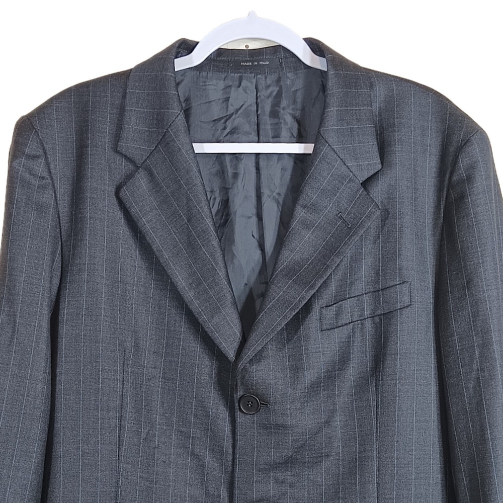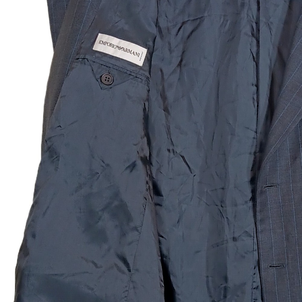 Color: Gray, Blue Brand: Emporio Armani Size: XXL/US 44 Fabric: 100% Wool Lining: 100% Cupro Satin lining Chest: 44” Waist: 42” Shoulder: 19” Length: 32.5” Sleeve: 25.75” Notched lapel Elegant blue pinstripes Long sleeve with 3 buttons Three-button front closure Expert authentication C ondition: Very good Authenticated Emporio Armani men’s blazer in very good condition, possible light wear.