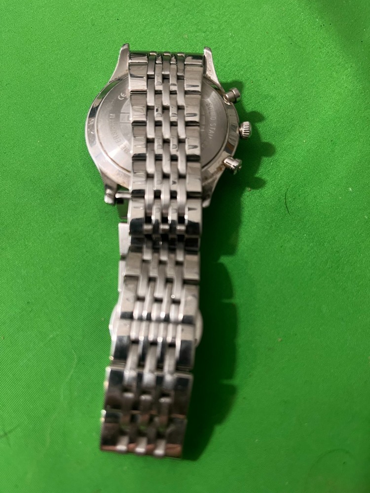 Classic Emporio Armani dress watch with clean minimalist design. Features silver dial with Arabic numerals, eagle logo, and stainless steel bracelet. Condition: Excellent used condition No scratches on watch face or case Stainless steel bracelet in great condition Clasp works perfectly and securely Currently needs a new battery (simple $10-15 fix at any jeweler or watch shop) Details: Stainless steel case and bracelet Silver dial with black hands and markers Classic dress watch styling Authentic Emporio Armani Perfect everyday watch or dress watch once you pop in a new battery!
