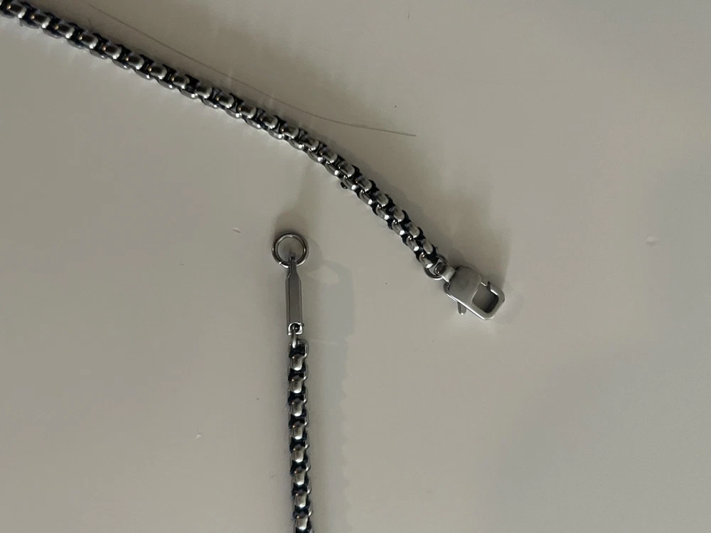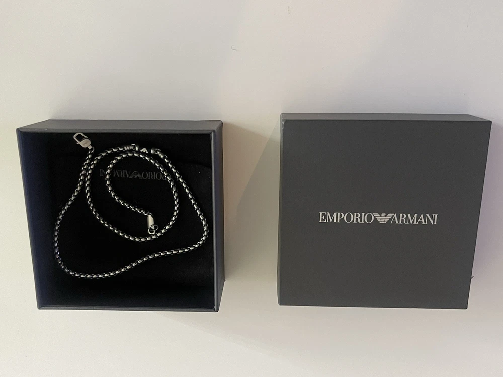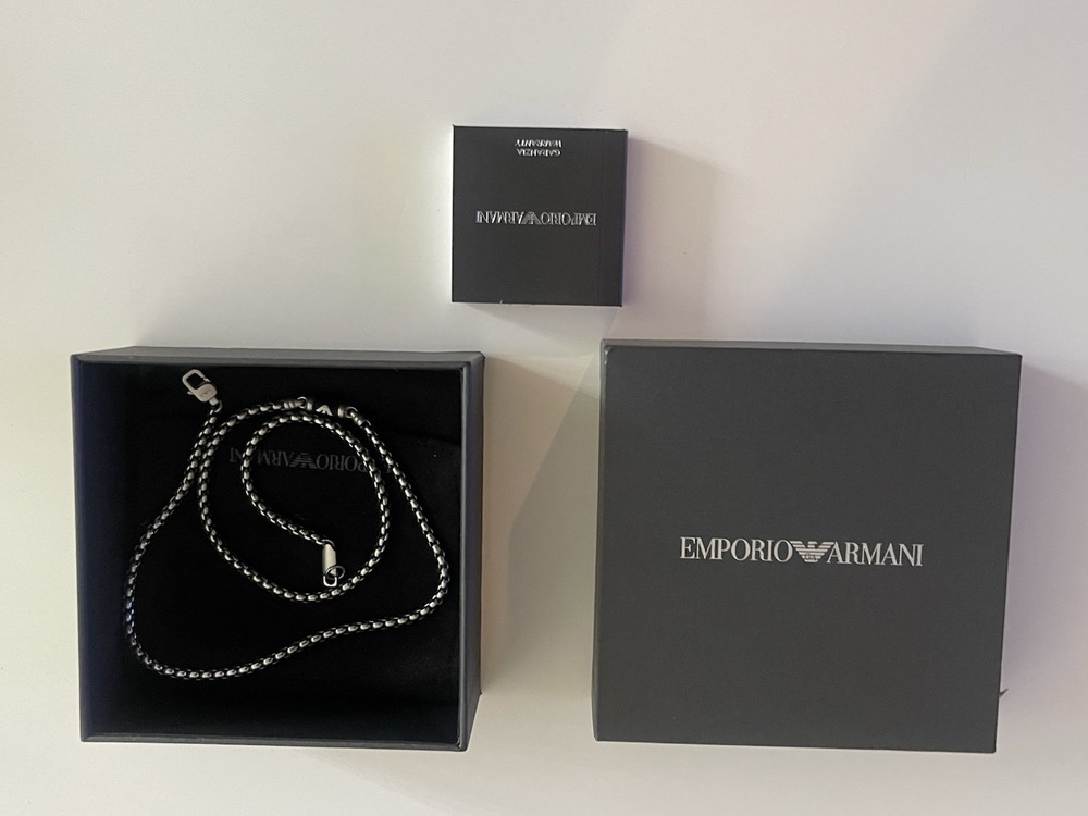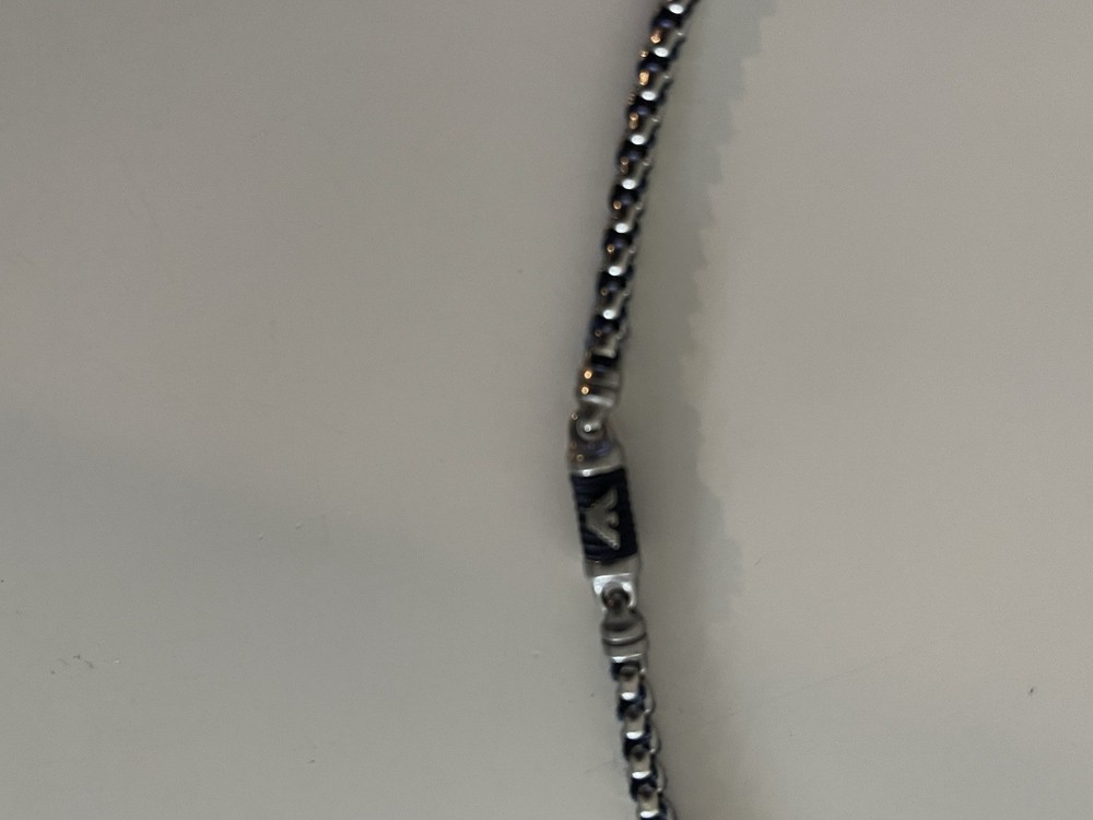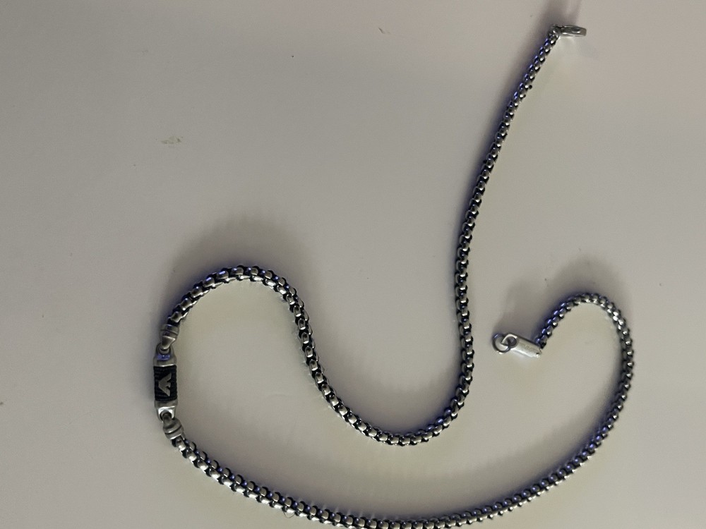 20 inch necklace with Emporio Armani sign in the middle of the necklace. The Emporio Armani sign is a little loose and could use regluing.