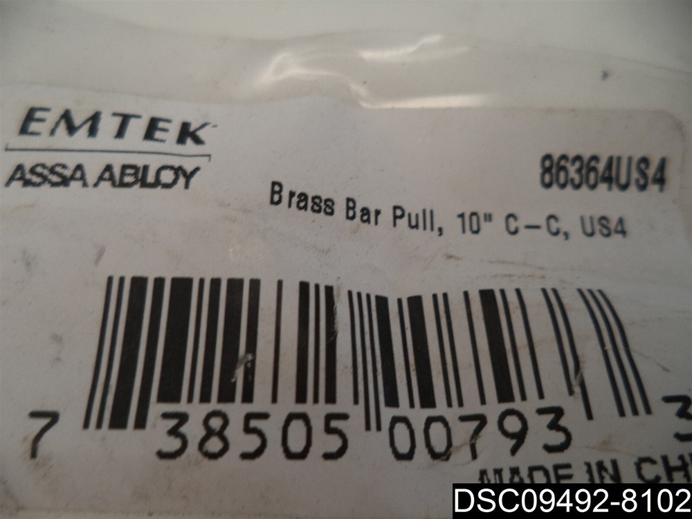 This item is:____Emtek 86364U 10" Brass Bar Cabinet Handle________________________________________________________________ This item is new, however, The original packaging may be missing or imperfect. See photos. Includes only what is shown in the picture. 1004 Warehouse Location:___Warehouse #1_Shelf______2345 Box 223____________________________ Sales tax will be added to items shipping to locations in Kansas. _____________________________________________________________________ _____________________________________________________________________ _____________________________________________________________________ By bidding and or purchasing this item(s) you (the buyer) agree to the following terms and conditions: 1. An item is defined as the following: The unit or units purchased in the ebay listing, (it could be a single unit, multiple units, a mixture of units, a variety of units, the incorrect unit or any combination of units not mentioned). It also includes the packaging, or lack thereof, the shipping label, and any contents place in the package by error. 2. The Seller is defined as Seller and/or Consignor. 3. The buyer is defined as the entity that purchased the item from Seller and/or Consignor. 4. If the buyer does not agree to these terms and conditions then do not purchase from us. 5. All items are sold AS IS No warranty or liability is expressed or implied. 6. The buyer agrees that: All items are shipped without insurance. It is the responsibility of the buyer to let us know if they want insurance on the item. Insurance cost is $2.00 for every $50 insured, in $50 increments. The buyer agrees that if no insurance is purchased and the item is not received or received damaged that no claim shall be brought against the seller. 7. We only ship to PayPal confirmed street addresses, no exceptions. No PO Boxes, APO, FPO or similar addresses. 8. The buyer agrees that the sale is considered complete once the carrier has picked up the item from the seller. 9. The buyer agrees that if there is a dispute that arises that the dispute will be settled in the State of Kansas under the laws of Kansas. 10. The buyer agrees that the item fits the buyers purpose prior to bidding. 11. The buyer agrees to indemnify and hold harmless the seller from any and all claims arising out of any conditions or defects for the item or items that they purchased 12. We only ship to the continental United States. The shipping price quoted is for the continental United States Only. All other locations will be charged extra. Out of county buyers agree to pay any additional charges that we ask them to pay including but not limited to import duties, shipping costs, packaging costs, time costs, and other costs. If the item is shipped via ebay global shipping program these terms and conditions still apply. 13. Claims made against the carrier for non-delivery, lost in transit or any other reason shall be made solely by the buyer without aid from the Seller. 14. In the event that any clauses or phrases contained here within are ruled out by a judge, the law, a lawyer, jurors, and or any other entity all others remain in effect. 15. If any claim is brought against the Seller the buyer agrees to pay for any and all costs including legal fees, travel, time, accommodations, and other costs. Late payment will result in the seller charging interest at the maximum legal rate. 16. In any event or circumstance the maximum liability to the Seller is the purchase price plus cost of shipping plus sales tax if applicable. This amount is not subject to inflation, interest, inconvenience fee or any other price adjustment. 17. The buyer agrees there will be no refunds for any reason outside of the Ebay return policy. 18. The buyer understands that our items are wholesale, overstock, unclaimed, foreclosure purchase or salvage goods. Most boxes have been opened for inspection and photos. If items are listed as new they may not come with original packaging. 19. The buyer agrees that they are trained, licensed, qualified, and understand how to properly use, dispose of and handle the product in accordance with law and regulations. 20. The buyer agrees that if any part of these terms and conditions is determined to be void that it does not void or alleviate the enforcement of the remainder of this contract. 21. Seller and/or Consignor is not an authorized distributor, reseller or representative of the products featured on this website. All product names, trademarks, brands and logos used on this site are the property of their respective owners. The depiction, description or sale of products featuring these names, trademarks, brands and logos is for identification purposes only and is not intended to indicate any affiliation with or authorization by any rights holder.