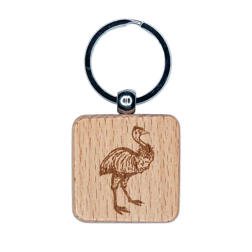 Emu Large Australian Flightless Bird Engraved Wood Square Keychain Tag Charm