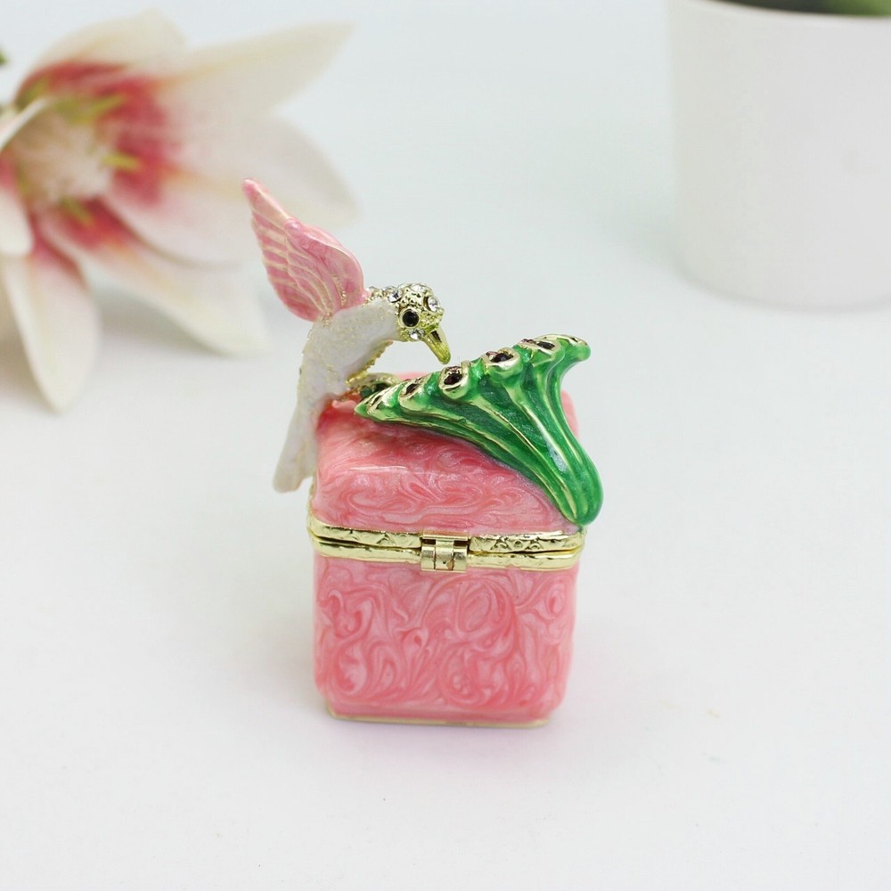 Enamel Hummingbird Flower Trinket Box - Wedding Gift, Romantic Home Decor