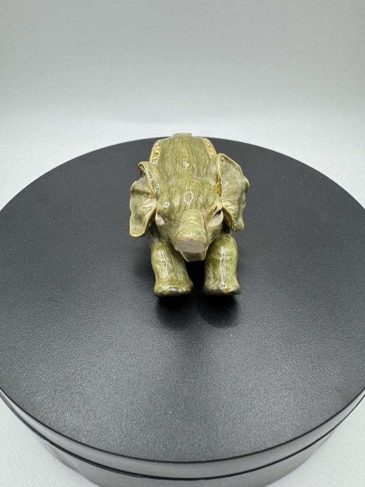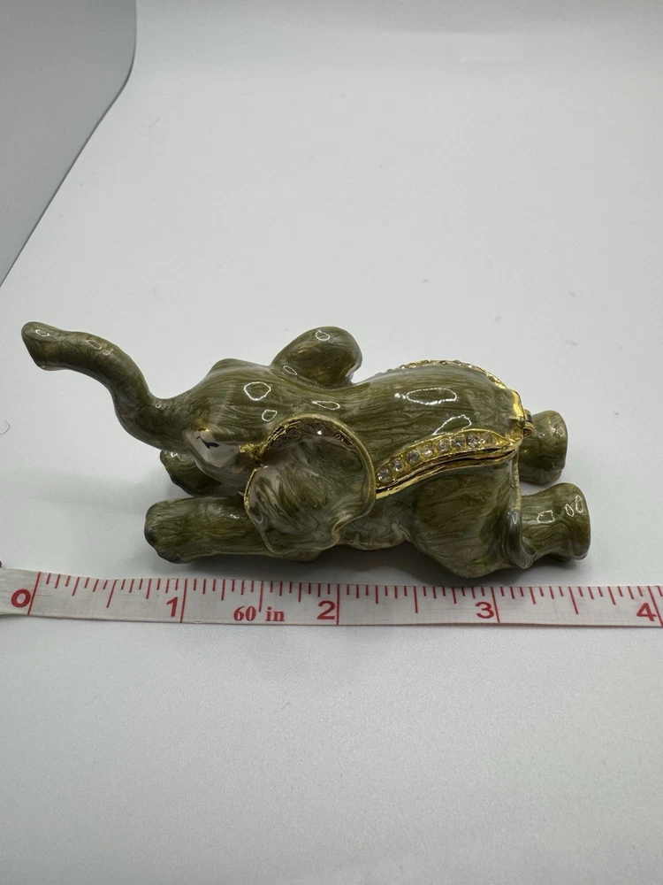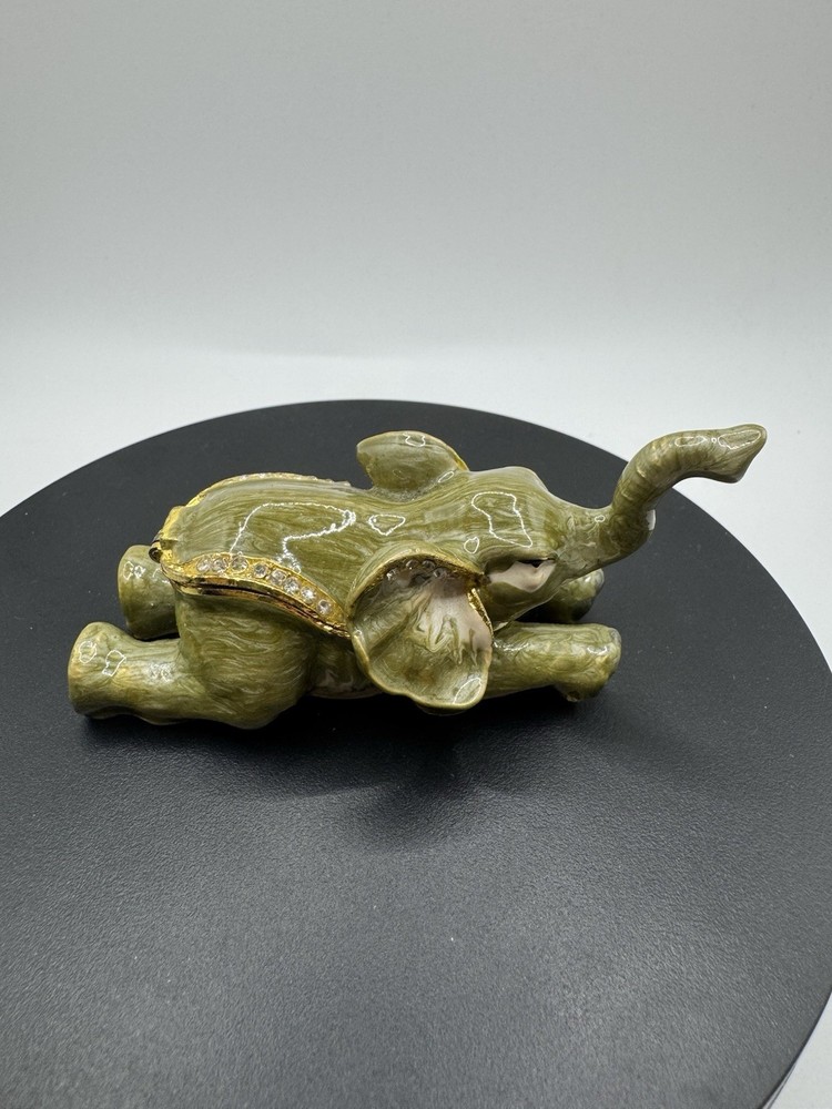 Department: Adults, Teens, Girls Type: Trinket Box Size: Small Room: Lounge Pattern: No Pattern Time Period Manufactured: 1990-1999 Features: Boxed Theme: Animals & Dinosaurs Country of Origin: Unknown Color: Green Subject: Elephant Material: Enamel Finish: Glossy Shape: Rectangle Style: Art Deco Brand: Unbranded Collection: Keepsake Boxes