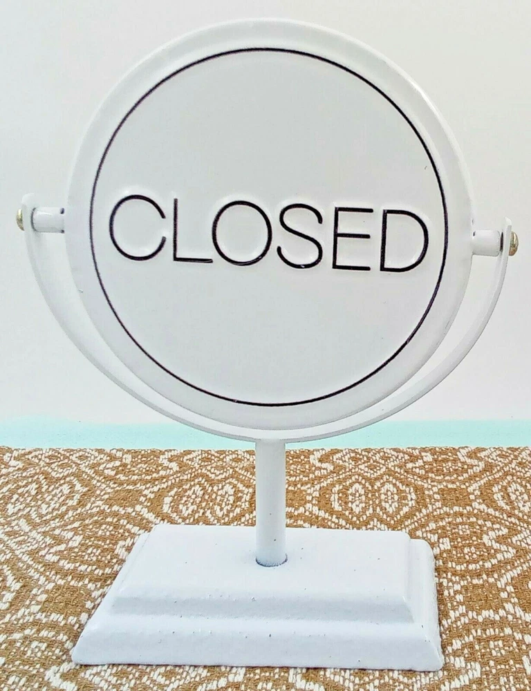 Enamel Metal Flip Sign Stand Open Closed Kitchen White with Black Letters 7.5"