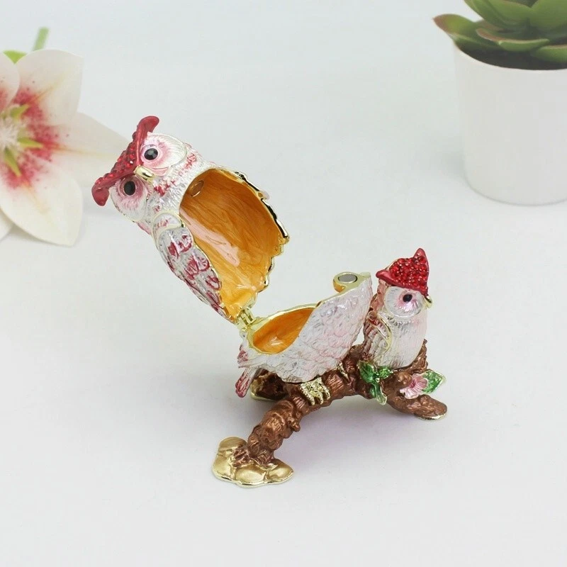 【 Materials】Pewter Enamel Size:6.7x4.5x7.8cm(LWH) Made in GuangDong 【 Package】Gift Box 100% Brand New Handmade Pewter Enamel Trinket Box Handmade by masters with 20+ Years Experience Can be use for Birthday Gifts,Wedding Favor,Christmas Gifts,Home Decorative This collectible trinket box is meticulously crafted from fine pewter I t is hand enameled and then lavishly inlaid with crystals by skilled artisans. Opens on a hinge to reveal the hand painted interior Magnetic closure to keep the box shut securely , T his jewelry trinket box is made of a pewter-like alloy and finished with a high polished finish Versatile Use: Perfect as both a decorative piece and a functional trinket box I deal for storing small precious items while bringing fortune symbolism