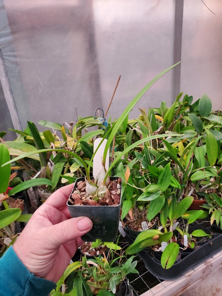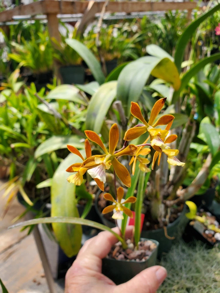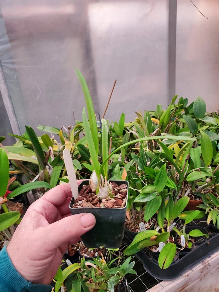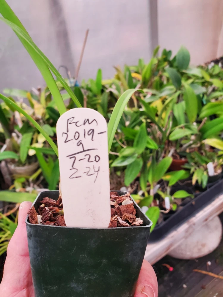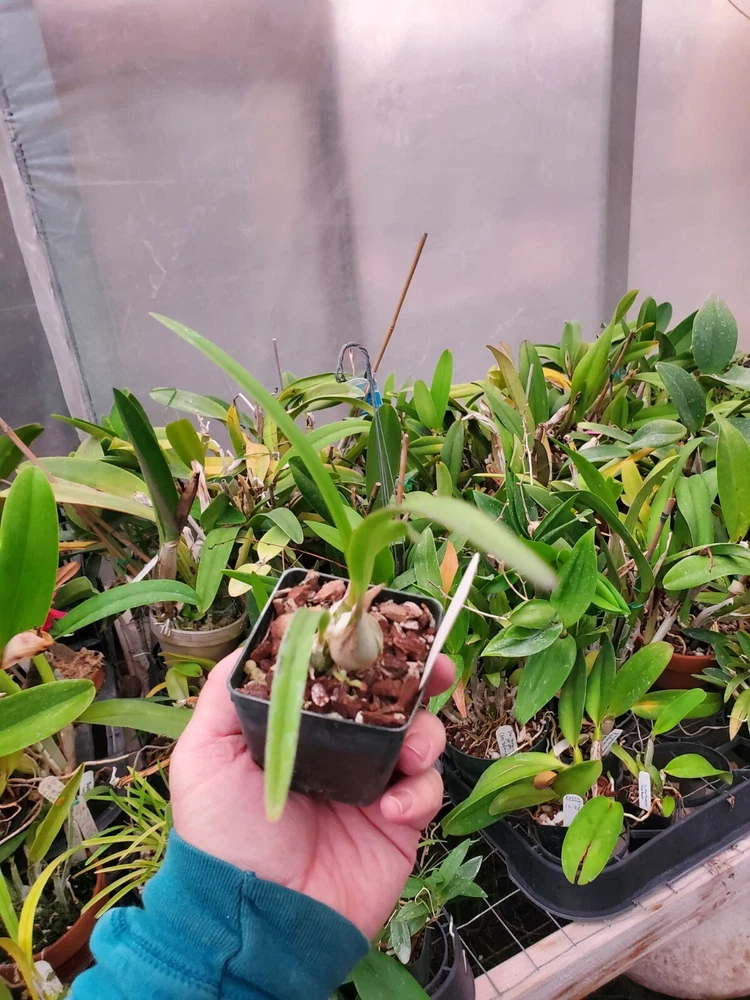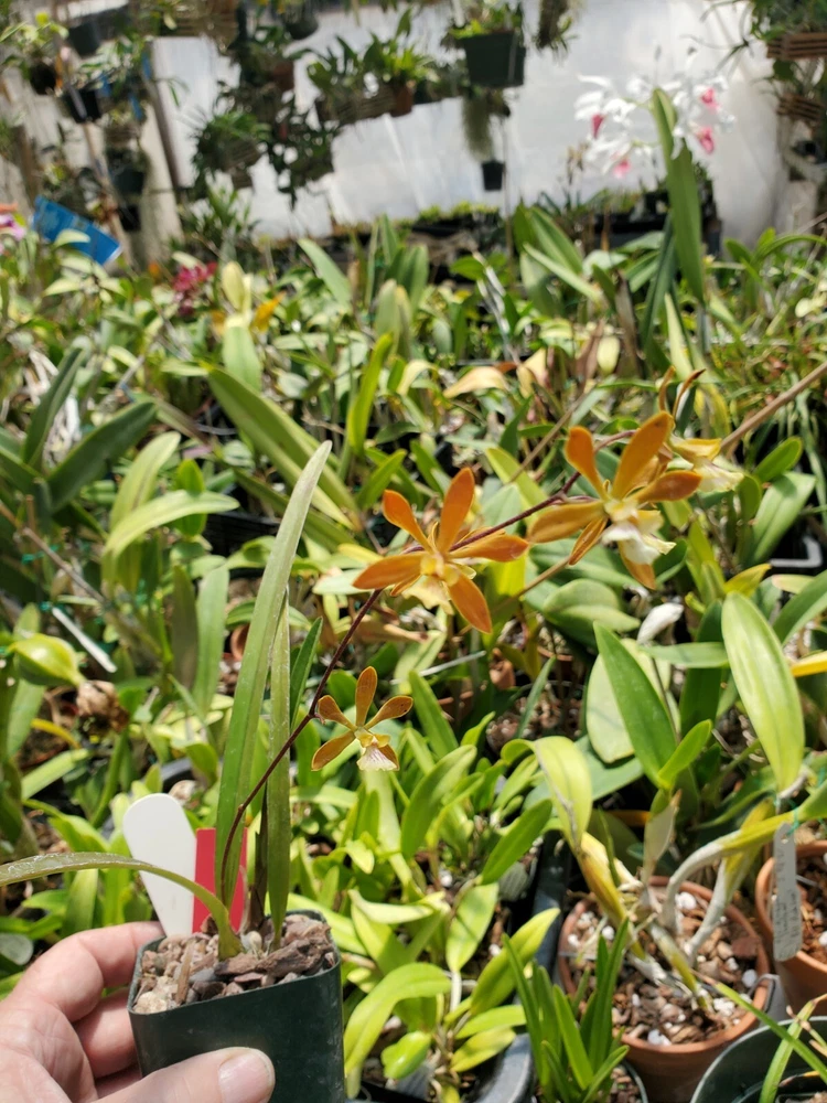 This is a seedling of encyclia John Clark Cargill ( John Brunton 'Garnet Methmann' AM/AOS X microtos). Encyclia microtos is a species from Mexico. the encyclia John Brunton was awarded a year ago. This is the first release of this new hybrid! The flower pictures are the first 2 of the cross that have bloomed. This plant probably won't bloom until next year, as the other two are done blooming. So far it doesn't appear to be fragrant. The flowers get more of a copper color as they age. Typical cattleya culture. It can be grown cool to hot. I grow it cool to warm and it gets the same treatment as my cattleyas. Seems to do well. The flower pictures are of this plant. the plant pictures are what you are bidding on. sent in the pot.