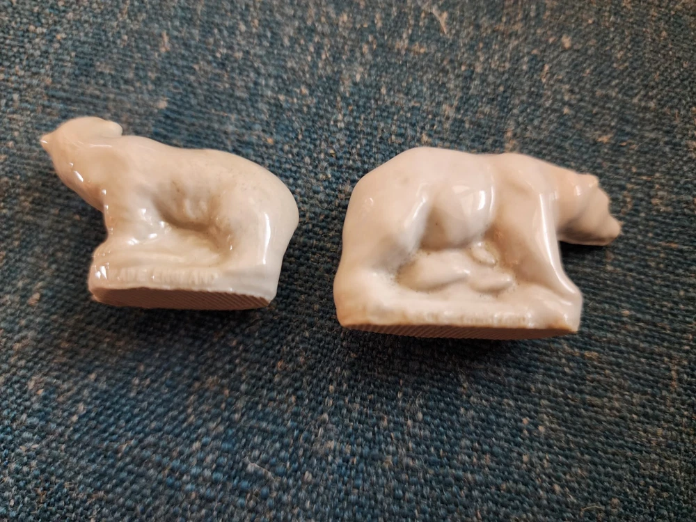 This product is a collectible figurine of two polar bears made by Wade. The figurine is part of the Animals collection and is likely a whimsical representation of the endangered animals of North America. The brand is known for producing high-quality collectibles, and this figurine would make a great addition to any collection.