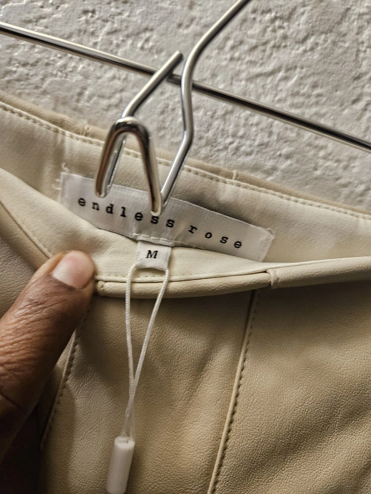 Upgrade your wardrobe with this chic Endless Rose pleated leather skirt. Perfect for any occasion, this solid beige mini skirt features a mid-rise and a zipper closure. The skirt is made of high-quality leather and is accented with pleats, adding a touch of elegance to your outfit. This skirt is perfect for women who want to make a statement with their fashion. The skirt is available in size M and is suitable for regular size types. It is important to note that this skirt requires dry cleaning only. Add this skirt to your collection and elevate your style today.
