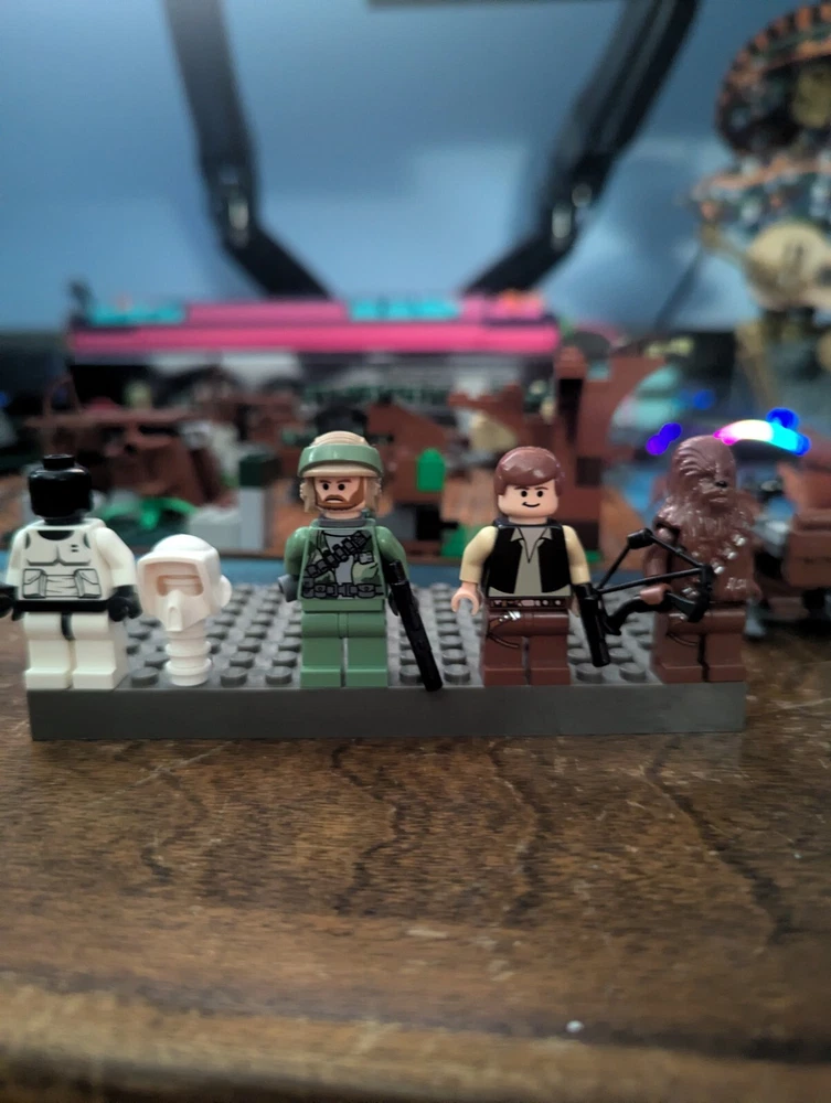 This is an add of the endor set 8083 plus a ton of extra minifigures. The set should be complete but can't guarantee that so as is. Two catapults from official Lego starwars endor sets plus the walker that comes with the endor 8083 set. Also comes with an added on roof for the endor base.