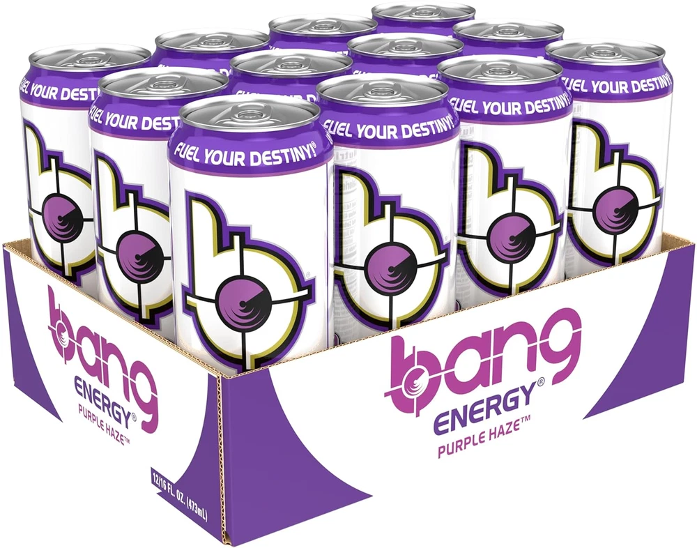 300 MG OF CAFFEINE: Bang Energy drinks contain enough caffeine to power you through any activity of the day. Stay energized for longer without the dreaded crash. ZERO-SUGAR ENERGY DRINK: NO sugar necessary! Just great-tasting, sustained energy. ULTRA CoQ10 and EAAs (Essential Amino Acids) GLUTEN-FREE AND VEGAN-FRIENDLY: Bang Energy drinks are gluten-free and vegan-friendly, so they are perfect for any lifestyle or diet. ZERO CARBS, ZERO ARTIFICIAL COLORS and ZERO CALORIES. Only the reformulated Bang Energy drinks have been tested and verified to be gluten-free and vegan-friendly. If you receive cans that have “BCAA Aminos” instead of “EAA Aminos” printed on them, we cannot guarantee that they fall within the gluten-free and vegan-friendly guidelines. Bang is not your typical sugar-filled soda masquerading as an energy drink. Every 16-ounce can of Bang contains 300 milligrams of caffeine, which studies have shown may increase endurance, as well as strength in some cases, along with essential amino acids (EAA Aminos), CoQ10.< What’s more, Bang is sugar-free and has ZERO calories — yet it tastes great, with 21 different flavors to choose from and counting!