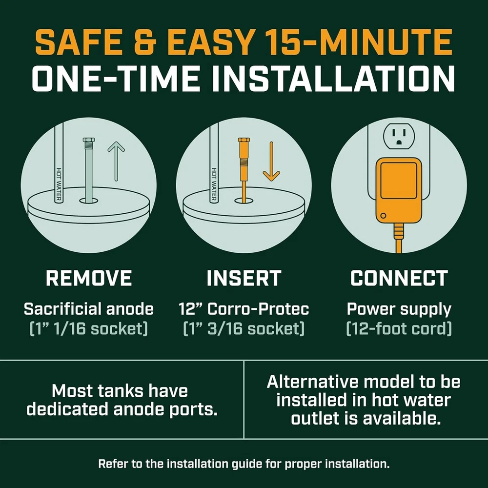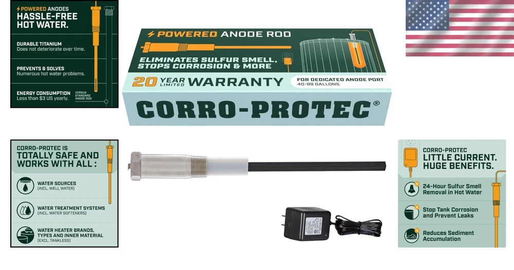 Energy-Efficient Titanium Anode Rod - Corrosion Prevention for Your Heater ‹ › ‹ › ‹ › ‹ › ‹ › ‹ › ‹ › ‹ › ‹ › ‹ › Energy-Efficient Titanium Anode Rod Ultimate Corrosion Prevention for Your Heater Why Choose Our Titanium Anode Rod? Transform your water heater experience with our pioneering corrosion prevention solution that ensures hassle-free hot water and eliminates unpleasant odors, all while extending the lifespan of your heater. Features: Hassle-Free Hot Water: Say goodbye to water heater maintenance headaches with advanced powered anode rods. Odor Elimination: Eradicate the foul rotten egg smell from your hot water. Permanent Protection: Designed for 40-89 gallon heaters, providing effective defense against all levels of water hardness. 20-Year Warranty: Enjoy peace of mind with our product that extends the life of your tank. Universal Compatibility: Compatible with all water heater brands (except Bradford White) and various installation types. Energy Savings: Combat sediment build-up, improve water quality, and lower energy bills. Simplified Installation: Comes with detailed instructions for an easy setup; requires standard socket sizes. Certified Safe: Lead-free construction with a Gold Seal from the Water Quality Association for your safety. Maximum Durability: Crafted from titanium, eliminating the need for frequent replacements. Benefits: Revolutionizes water heater maintenance with innovative technology. Protects against corrosion, ensuring long-lasting performance. Enhances the quality of hot water, creating a healthier environment. Reduces the frequency of anode rod replacements, saving you time and money. Why Wait? Upgrade your water heater today with our Energy-Efficient Titanium Anode Rod and experience the difference in hot water quality and longevity. With a promise of corrosion protection and energy savings, this innovative solution is the ideal choice for homeowners seeking reliability and convenience. Shipping Free & Fast Shipping - We offer free shipping to most of the USA with a normal delivery time of 3-7 days. However, due to the current situation, additional delivery time (up to 3 weeks) may be required for some items. Alternative Carriers - We may use alternative carriers (e.g. USPS, FedEx, UPS, etc.) to ensure your package arrives safely and on time. Due to the use of multiple carriers, we are unable to provide a tracking number automatically. Handling Time - Orders are processed and shipped within 1-2 business days of receiving cleared payment. Shipping Restrictions - Shipping to Alaska, Hawaii, Puerto Rico, Guam, and other US territories may incur shipping charges or delivery restrictions. Please contact us before ordering, or your order can be refunded/cancelled. State Restrictions - There may be restrictions based on your state of purchase. For example, certain items may not be shipped to California due to state regulations. Contact for Tracking Updates - If you require tracking updates or have any concerns about the delivery of your order, please feel free to contact us, and we will be happy to assist you. Return Please see our eBay Return Policy. Thank you. Payment We accept all major credit cards, PayPal, and Apple Pay for your convenience. Your payment information is secure and encrypted to ensure a safe and seamless transaction. Please complete your payment within 3 days of purchase to avoid any delays in shipping. Feedback Your feedback is extremely important to us. We strive to provide the best products and customer service possible. If you are satisfied with your purchase, please take a moment to leave us a positive review. If you have any concerns or issues with your order, please contact us before leaving negative feedback. We are committed to resolving any problems and ensuring your satisfaction. Contact Us If you have any questions or concerns, please feel free to reach out to our customer support team. You can contact us through the eBay messaging system. We are available Monday to Friday, 9:00 am to 5:00 pm EST, and we will do our best to respond to your inquiry within 24 hours. Thank you for supporting our small family business! UPC: Not Set Model: Not Set Unit Quantity: 15 oz Power Source: Corded Electric Items Included: Adapter Compatible Product: Storage Tank Water Heater Material: Stainless Steel,Titanium Year Manufactured: Not Set Style: Screw-In Water Connection Location: Top Smart Home Compatibility: Universal Smart Home Protocol: None Maximum Temperature: 71 °C Features: Energy Efficient,Easy to Install,Permanent Corrosion Protection Brand: Unbranded Type: Water Heater Anode Rod Color: Black Voltage: 110 V Item Length: Not Set Item Diameter: 1 in Item Width: Not Set Power: 1000 W or Less Tank Capacity: 40-89 gal Compatible Model: Not Set Item Weight: 15 oz Compatible Brand: Not Set Item Height: Not Set MPN: Not Set Country/Region of Manufacture: Not Set Manufacturer Warranty: Not Set Unit Type: oz
