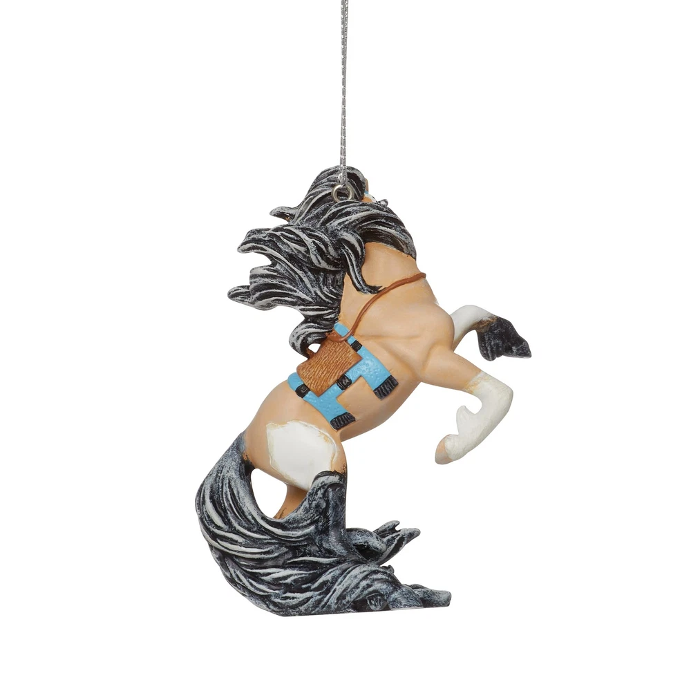 The Trail of Painted Ponies celebrates the magic of the horse as an artistic canvas, the rich culture of America, and the unique talents of independent artists. The artists behind this exquisite collection come from all different backgrounds, and the inspirational stories behind each design are as heartfelt as they are beautiful. This impressive horse captivates with color and dignity. Rearing in the wind, her billowing black and white mane beguiles. With traditional native American war paint and a colorful saddle, this hanging ornament enchants with indigenous intrigue. About Us: Enesco is committed to BRING JOY EVERY DAY. The premier global destination for high-quality giftware, and home décor, our prestigious family of brands includes: Department 56 Village, Izzy and Oliver, Foundations, Jim Shore Heartwood Creek, Disney Traditions by Jim Shore, Disney Showcase Collection, Disney by Britto, Designs by Lolita, Our Name Is Mud, and many more. ENESCO HANGING ORNAMENT: from the Trail of Painted Ponies collection DESIGNED: by Laura Robinson, celebrating the magic of the horse, the rich culture of America, and the unique talents of independent artists HAND-CRAFTED: from high-quality stone resin material with a string hanger, and hand-painted with intricate detail PACKAGED: in a beautiful gift box, making the perfect gift for the horse enthusiast in your life DIMENSIONS: 2.5" L x 1.5" W x 3.2" H