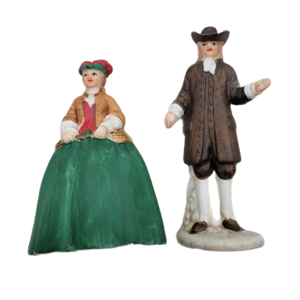 This Enesco Williamsburg Village Figurines set features a charming colonial couple, a man and a woman, both beautifully crafted from porcelain material with a matte finish. The figurines come from Taiwan and are part of the Enesco collection, perfect for collectors of all occasions. The multicolor characters are dressed in colonial attire and are ideal for adding a touch of history to any decor. These figurines are perfect for adults and make a great addition to any collection. The Enesco brand is well-known for its quality and attention to detail, making this set a must-have for any collector.