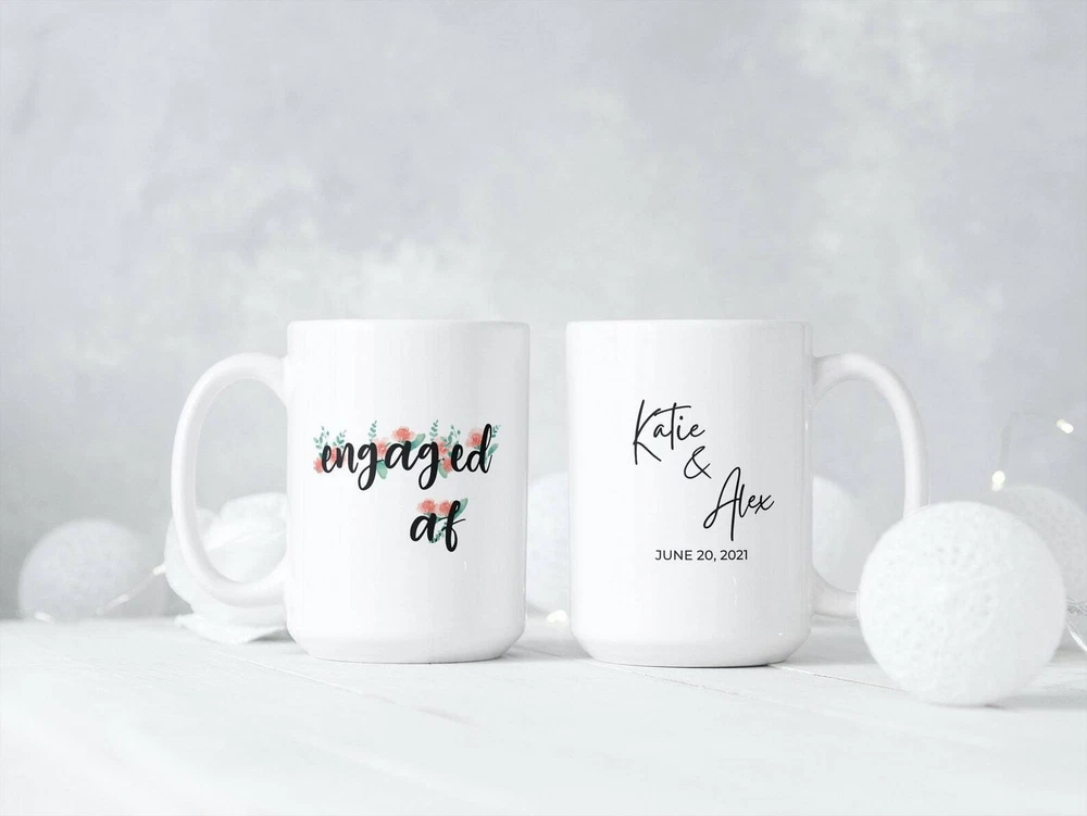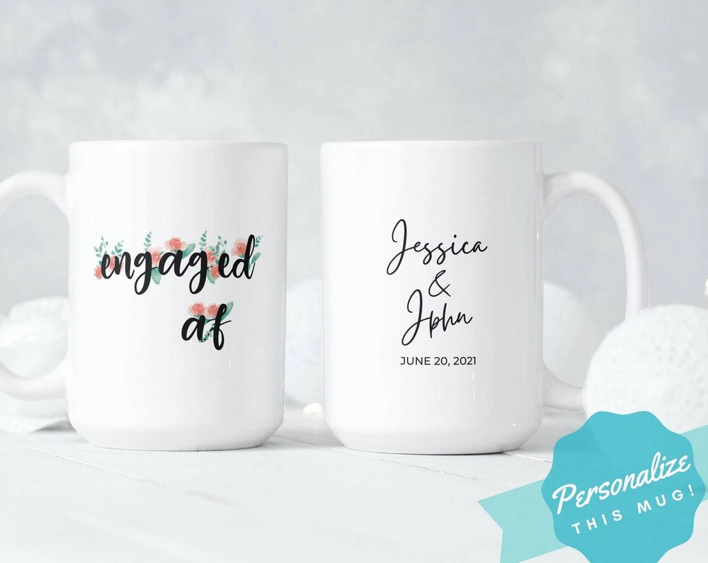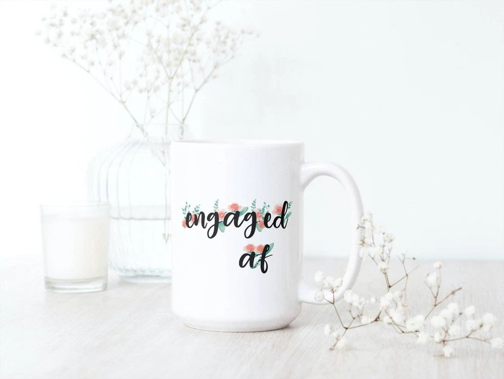 Engaged Af Coffee Mug Floral Sassy Engagement Wedding Gift Idea Available In Product Details.. This high quality 11oz. ceramic white mug has a premium hard coat that provides crisp and vibrant color reproduction sure to last for years. Perfect for all hot & cold beverages. The highest quality printing possible is used. It will never fade no matter how many times you wash it. Material: 100% Ceramic. Print both sides. Dishwasher and Microwave Safe. High Gloss + Premium White Finish. Printed in the U.S.A. Personalized & Custom. We support personalized and custom mug to add custom, when placing an order, you can add notes to the "order note" in shipping address section. Also you can contact us directly via message. Shipping Info. Ready to ship in 1 to 2 business days, All products are made-to-order and proudly printed in the United States. Shipped by USPS and DHL, You will receive your order in 5-7 days. Replace & Refund. All products are defective during shipping broken, chipped will be replaced free of charge. You are not satisfied with the product, we will refund 100% money to you. If any other issues arise, please do not hesitate to message, we would be more than happy to assist you.