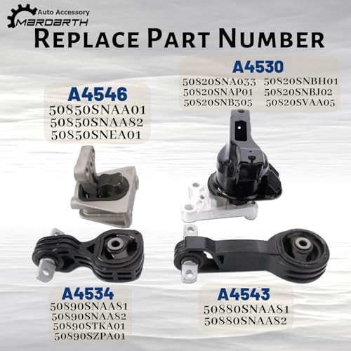Engine Motor and Trans Mount Set of 4 Compatible with 2006/ 2007/ 2008/ 2009/ 2010 Ho~N~Da Civic 1.8l Automatic Transmission Replaces # A4530 A4534 A4546 A4543 About this item Replaces Part: Before Purchasing The Engine Motor and Trans Mount Kit, Please Check The Oem Part Number And Compatibility Compatible With: 2006-2010 Honda Civic 1.8 Liter Automatic Trans, Not Fit 1.3 Liter Or 2.0 Liter Package Includes: A4530 A4534 A4543 A4546 EM9213,EM9216,EM9218,EM9280,50820-SNA-023,50850-SNA-A81,50890-SNA-A8,50880-SNA-A81,1x Front Right Motor Mount(A4530),1xTorque Strut Front Lower Mount( A4534) ,1xToque Strut Front Upper Mount(A4543),1xAuto-Transmission Mount(A4546) Features: Made Of High-Quality Raw Materials And Rust-Resistant Coating Which Is Better Strength, Durable, Anti-Corrosion And With Long Service Life Warranty: 12 Months Warranty, Engine Motor And Transmission Bracket Kit Is Built To Strict Quality Control Standards, 100% New And High Quality, Easy To Install. True Worry-Free Shopping Experience › See more product details *50890-SNA-A81 50880-SNA-A81, 50850-SNA-A81 50820-SNA-023 *1 Motor Mount, 2 Torque Strut Mounts, 1 Transmission Mount *2006-2010 Civic 1.8 L,Not fit 1.3 Liter or 2.0 Liter #9,995 in Automotive ( See Top 100 in Automotive ) #12 in Automotive Replacement Engine Mounts Shipping U.S.-Based |Fast & Free Shipping Daily |While supplies last | Note: For U.S. territories (PR, AK, HI, GU, VI) or Overseas, please contact us prior to purchase to confirm shipping. Return Returns are accepted within 7 days if items are unused and in original packaging. Otherwise, restocking fees or rejection may apply. Payment We accept all major payment methods and are committed to your complete satisfaction. Any concerns will be addressed promptly and professionally. Please visit our eBay store to check out other items for sale! Thank you for shopping at our store.