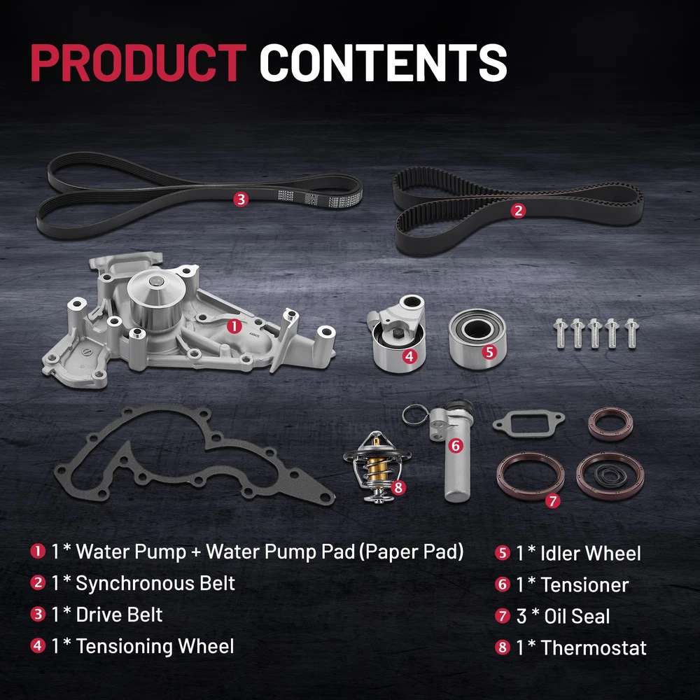 Specification: Condition: 100% brand new and superior quality Type:Timing Belt Kit Material: Aluminum, Steel, Cast Iron Greasable or Sealed: Sealed Warranty:2 Years Part Number: 13568-69095,13503-62040,13568-09070,90916-02586 Fitment: Lexus GX470 2003-2004 4.7L V8 Lexus LX470 1998-2004 4.7L V8 Toyota 4Runner 2003-2004 4.7L V8 Toyota Land Cruiser 1998-2005 4.7L V8 Toyota Sequoia 2001-2004 4.7L V8 Toyota Tundra 2000-2004 4.7L V8 Package Included: 1*Water Pump+Water Pump Pad(Paper Pad) 1*Idler Wheel 1*Synchronous Belt 1*Tensioner 1*Drive Belt 3*Oil Seal 1*Tensioning Wheel 1*Thermostat Specification: Condition: 100% brand new and superior quality Type:Timing Belt Kit Material: Aluminum, Steel, Cast Iron Greasable or Sealed: Sealed Warranty:2 Years Part Number: 13568-69095,13503-62040,13568-09070,90916-02586 Fitment: Lexus GX470 2003-2004 4.7L V8 Lexus LX470 1998-2004 4.7L V8 Toyota 4Runner 2003-2004 4.7L V8 Toyota Land Cruiser 1998-2005 4.7L V8 Toyota Sequoia 2001-2004 4.7L V8 Toyota Tundra 2000-2004 4.7L V8 Package Included: 1*Water Pump+Water Pump Pad(Paper Pad) 1*Idler Wheel 1*Synchronous Belt 1*Tensioner 1*Drive Belt 3*Oil Seal 1*Tensioning Wheel 1*Thermostat Payment Delivery details Terms of sales About us Contact us Payment 1.We only accept PayPal. PayPal is the only online payment method we accept. Please make sure you have a valid/confirmed PayPal account prior bidding. 2.All Paypal Payments must be Confirmed. Payment must be made within 48hrs of the auction end time. Non-Paying bidders will be reported. 3.When you get your package,maybe you will pay some charges, it's taxes for local customs,not pay to us, and the fees are depends on the customs, all buyer are same. Delivery details 1.Items will be shipped within 2 business days after payment is received. 2.We ship to your eBay address. Please make sure your eBay address is correct. Buyer takes responsibility if eBay address is wrong. 3.Import duties, taxes and charges are not included in the item price or shipping charges. Please check with your country customs office for these additional charges. 4.We shipping using UPS or USPS from our nearest warehouse to you. Tracking numbers will be emailed upon shipment. Terms of sales 1.Please feel free to email us if you have any question. 2.We appreciate you contact us via eBay message when you are not satisfied rather than open case or leave negative feedback directly. We'll try our best to solve the issue. 3.Refund will be issued once we receive your returned items. Buyer is responsible for all return shipping charges. 4.Please contact us for return process before you return the item. 5.All items for exchange or refund must be returned in "as new" condition. About us We are the responsible seller ,always provide high-quality products and best service .If you have any questions, please contact us, and will try our best to help you. Please contact us by eBay Message, and we will reply you within 24 hours. Thank you very much! Contact us We are the professional auto parts manufacturer , and provide line lock, AN hose end fittings , fuel line , fuel filter , fuel regulator , exhaust cutout , exhaust tips , exhaust muffler and so on .The quality of the product to be secured. If you have any questions or any needs , please contact us , and will try our best to help you.