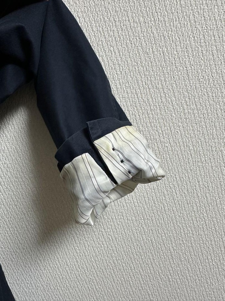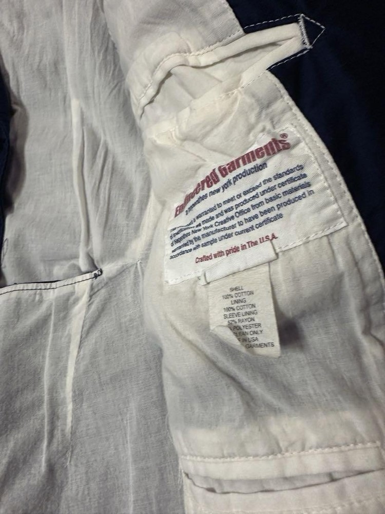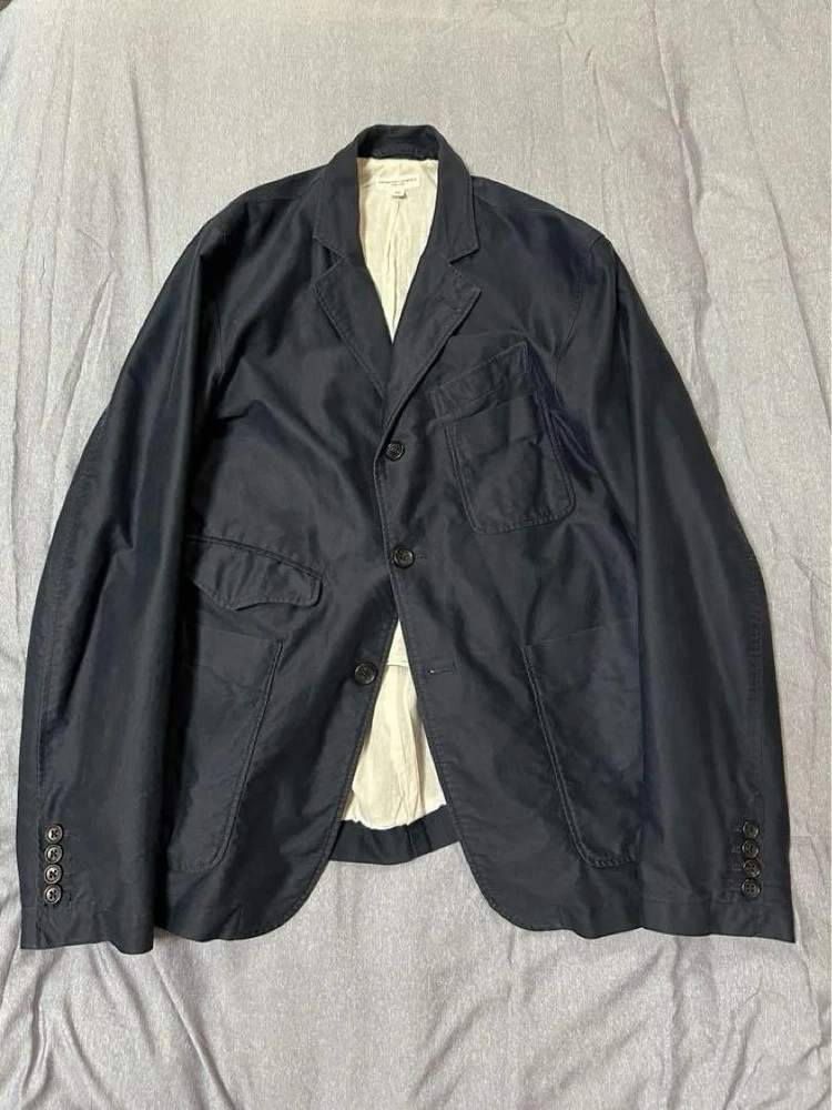 This jacket is a fantastic find! The navy color is versatile, and the tailored fit is spot-on for a polished look. Lightweight yet structured, it’s ideal for layering in spring. The slight stain inside the sleeve is barely noticeable, and the overall condition is great. Authentic Engineered Garments quality—love the Japanese craftsmanship. Highly recommend!