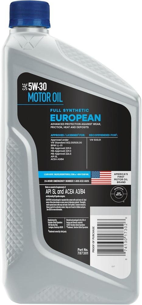 Engineered for Performance: European Full Synthetic SAE 5W-30 Motor Oil - 32 oz ‹ › ‹ › ‹ › ‹ › ‹ › ‹ › ‹ › ‹ › ‹ › ‹ › Engineered for Performance: European Full Synthetic SAE 5W-30 Motor Oil - 32 oz Transform your driving experience with our advanced European Full Synthetic Motor Oil, meticulously formulated to enhance the performance and longevity of European gasoline and diesel engines. Key Features: Advanced Protection: Shields against wear, friction, heat, and deposits—the four main culprits of engine breakdown. Low-SAPS Technology: Contains reduced Sulfated Ash, Phosphorus, and Sulfur for flawless compatibility with emissions systems. Exceptional Temperature Resilience: Provides outstanding protection in extreme driving conditions and climates, ensuring reliability at any temperature. Superior Antioxidants: Engineered to prevent harmful deposits and sludge build-up, promoting a cleaner engine. Advanced Anti-Wear Additives: Offers enhanced wear protection, surpassing industry and OEM standards. Meets Exclusive Specifications: API SL, ACEA A3/B4 and all preceding API gasoline categories. Approved for top European standards including VW 502.00/505.00, BMW LL-01, and multiple MB-Approval grades. Recommended for VW 505.01, BMW LL-14FE+, and Renault RN0700 & RN0710. Why Choose European Full Synthetic Motor Oil? European vehicles combine sleek sophistication with precision engineering, requiring specific motor oil standards for optimal performance. Our European Vehicle Full Synthetic 5W-30 Motor Oil is uniquely crafted for the high demands of gasoline and diesel engines in vehicles like VW, BMW, Mercedes-Benz, Audi, and Porsche. Engineered specifically to protect Turbocharged Gasoline Direct Injection (TGDI) engines and combat Low-Speed Pre-Ignition (LSPI), this motor oil provides cleaner performance and ultimately contributes to a longer engine life. Unlike traditional motor oils that can jeopardize emissions systems, our low-SAPS formula safeguards your vehicle while enhancing performance. Your European car deserves a motor oil. Choose the superior protection of our European Full Synthetic Motor Oil—where performance meets perfection. Shipping Free & Fast Shipping - We offer free shipping to most of the USA with a normal delivery time of 3-7 days. However, due to the current situation, additional delivery time (up to 3 weeks) may be required for some items. Alternative Carriers - We may use alternative carriers (e.g. USPS, FedEx, UPS, etc.) to ensure your package arrives safely and on time. Due to the use of multiple carriers, we are unable to provide a tracking number automatically. Handling Time - Orders are processed and shipped within 1-2 business days of receiving cleared payment. Shipping Restrictions - Shipping to Alaska, Hawaii, Puerto Rico, Guam, and other US territories may incur shipping charges or delivery restrictions. Please contact us before ordering, or your order can be refunded/cancelled. State Restrictions - There may be restrictions based on your state of purchase. For example, certain items may not be shipped to California due to state regulations. Contact for Tracking Updates - If you require tracking updates or have any concerns about the delivery of your order, please feel free to contact us, and we will be happy to assist you. Return 30-Day Hassle-Free Returns - We want you to be completely satisfied with your purchase. If you are not, you can return the item within 30 days of receiving it for a full refund or exchange. Easy Return Process - To start a return, simply contact us and we will provide you with a prepaid return shipping label and detailed instructions. Restocking Fee - There are no restocking fees for returns. However, the buyer is responsible for return shipping costs if the return is not due to a seller's error. Refund Processing Time - Refunds will be processed within 5 business days of receiving the returned item in its condition. Payment We accept all major credit cards, PayPal, and Apple Pay for your convenience. Your payment information is secure and encrypted to ensure a safe and seamless transaction. Please complete your payment within 3 days of purchase to avoid any delays in shipping. Feedback Your feedback is extremely important to us. We strive to provide the best products and customer service possible. If you are satisfied with your purchase, please take a moment to leave us a positive review. If you have any concerns or issues with your order, please contact us before leaving negative feedback. We are committed to resolving any problems and ensuring your satisfaction. Contact Us If you have any questions or concerns, please feel free to out to our customer support team. You can contact us through the eBay messaging system. We are available Monday to Friday, 9:00 am to 5:00 pm EST, and we will do our best to respond to your inquiry within 24 hours. Buy it now and enjoy a pleasant shopping experience! Manufacturer Part Number: 5W-30 Motor Oil Unit Quantity: 1 Type: Full Synthetic Oil Viscosity: 5W - 30 Fuel Type: Gasoline Volume: 1qt. Package Quantity: Pack of 1