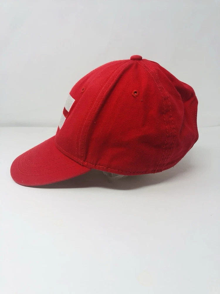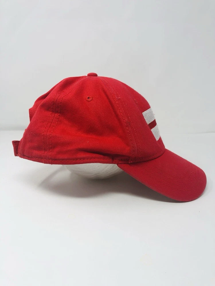 This red baseball cap is a stylish addition to any outfit. Made in England, this hat features an adjustable strap for a comfortable fit and is perfect for any baseball fan. The cap is one size fits all and is a great accessory for any casual occasion. Its solid red color makes it easy to pair with any outfit and it is perfect for a day at the game or a casual day out.