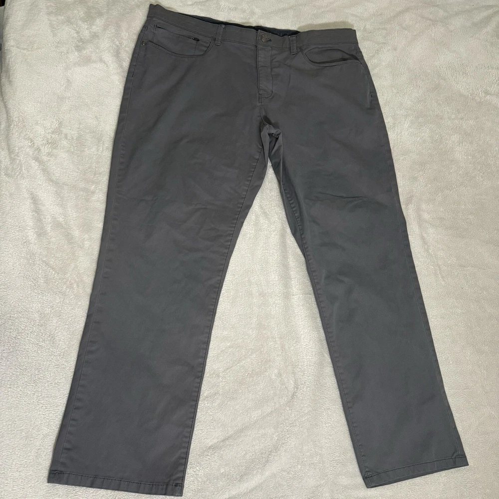 Material: Cotton Blend Pattern: Solid Closure: Zip Theme: Preppy, Classic Front Type: Flat Front Size: 40 Occasion: Casual, Travel Style: Chino Color: Gray Waist Size: 40 in Fabric Type: Canvas Department: Men Leg Style: Straight Inseam: 30 in Type: Pants Fit: Regular Brand: English Laundry Features: Comfort, Lightweight, Pockets, Stretch Size Type: Regular Accents: Button, Zipper