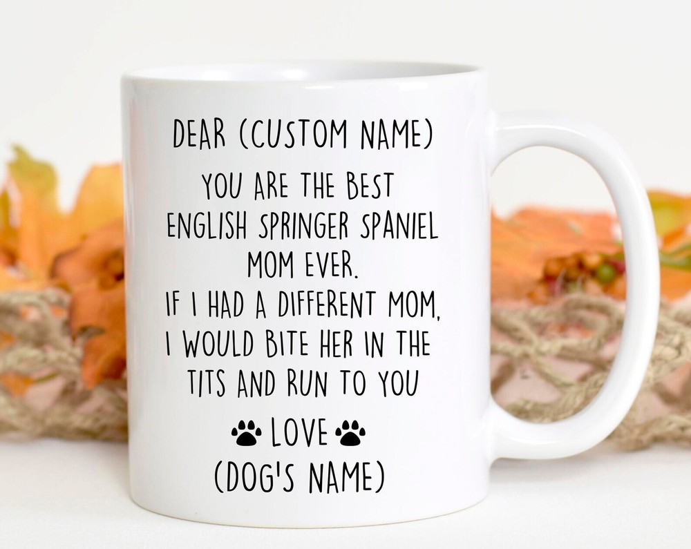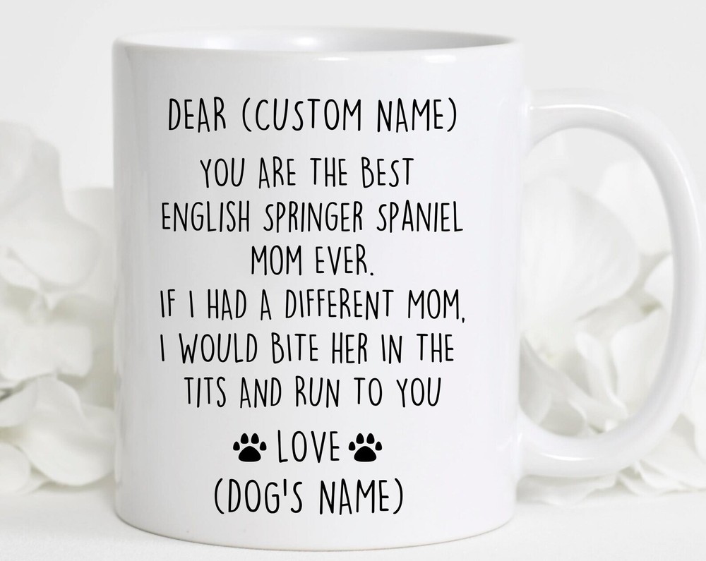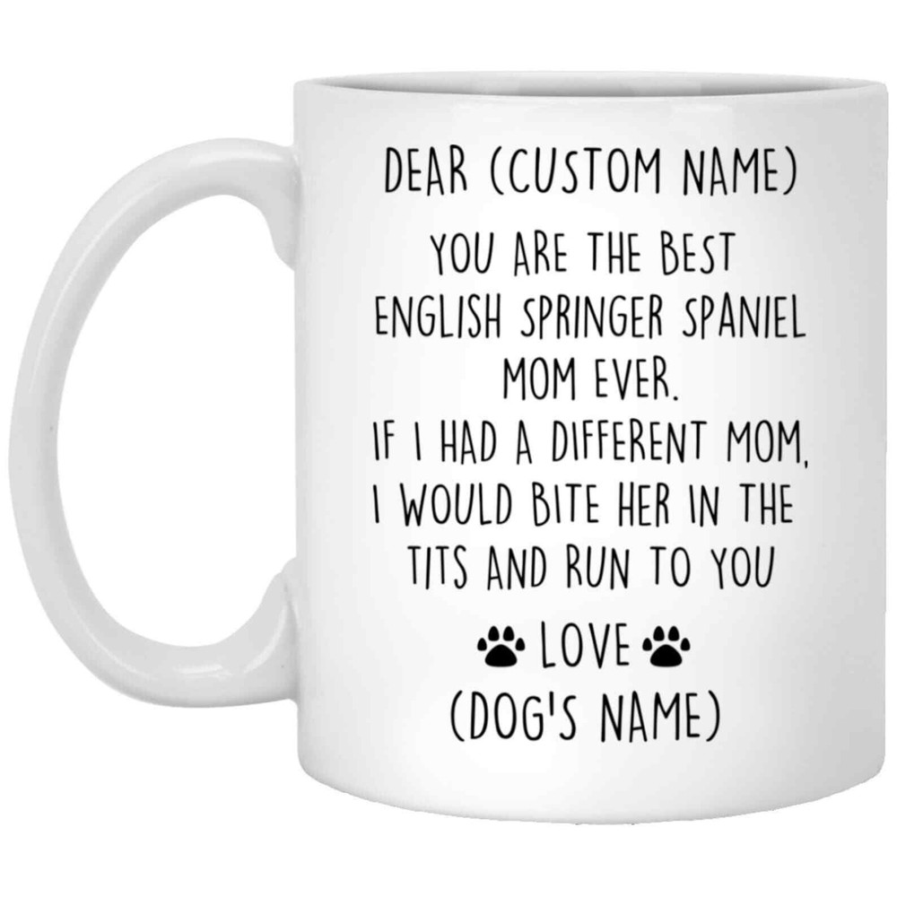 English Springer Spaniel Mom Birthday Gift English Spaniel Mom Christmas Gift Ess Mom Valentine Gift English Spaniel Mom Appreciation Product Details.. This high quality 11oz. ceramic white mug has a premium hard coat that provides crisp and vibrant color reproduction sure to last for years. Perfect for all hot & cold beverages. The highest quality printing possible is used. It will never fade no matter how many times you wash it. Material: 100% Ceramic. Print both sides. Dishwasher and Microwave Safe. High Gloss + Premium White Finish. Printed in the U.S.A. Personalized & Custom. We support personalized and custom mug to add custom, when placing an order, you can add notes to the "order note" in shipping address section. Also you can contact us directly via message. Shipping Info. Ready to ship in 1 to 2 business days, All products are made-to-order and proudly printed in the United States. Shipped by USPS and DHL, You will receive your order in 5-7 days. Replace & Refund. All products are defective during shipping broken, chipped will be replaced free of charge. You are not satisfied with the product, we will refund 100% money to you. If any other issues arise, please do not hesitate to message, we would be more than happy to assist you.