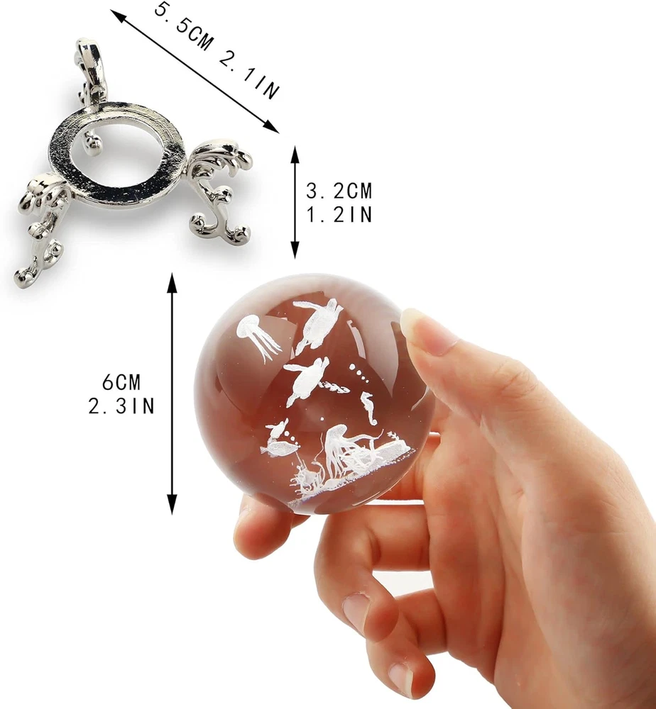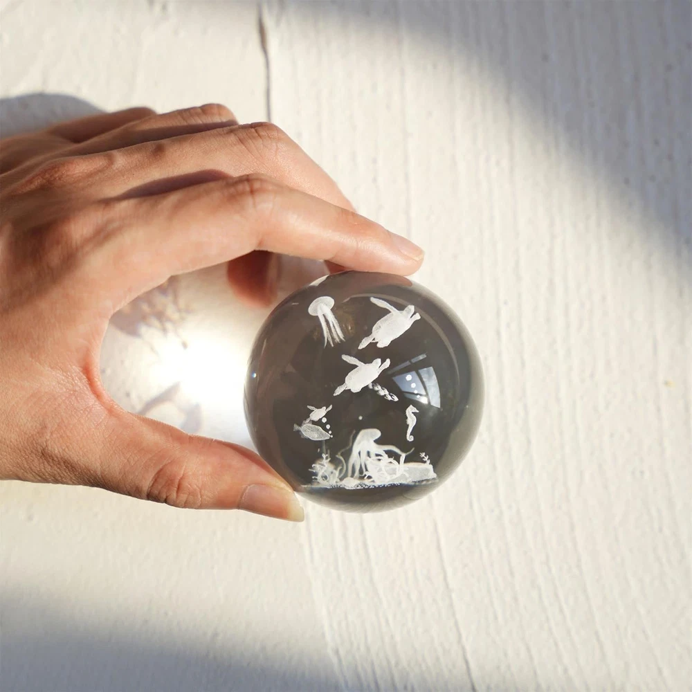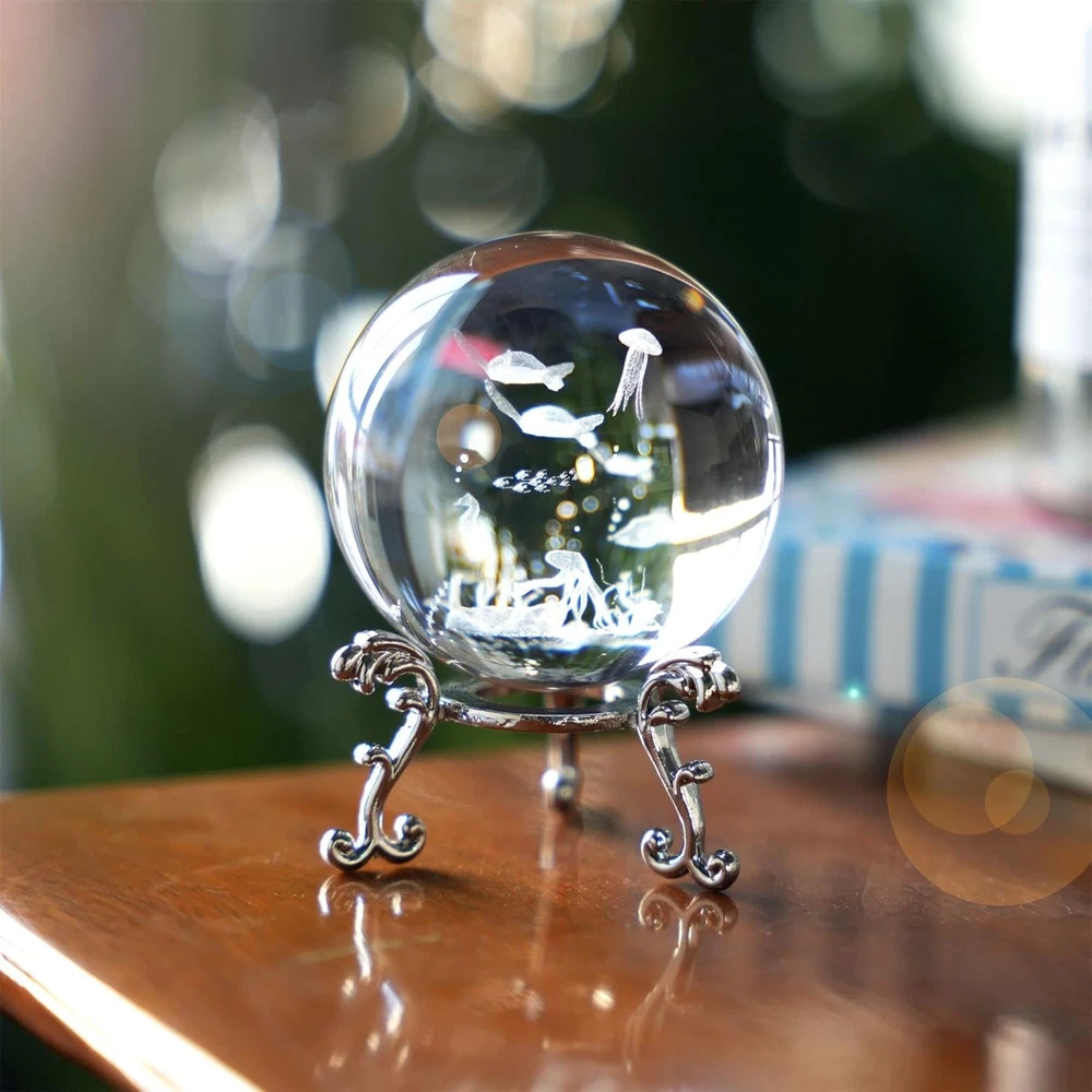 Engraved Crystal Ball with Stand 60Mm 3D Laser Etched Crystal Sea Life Decor Gla