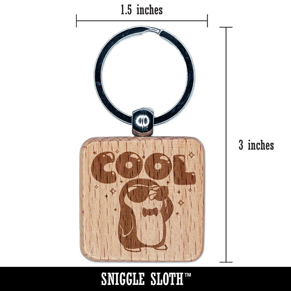 Engraved Wooden Penguin Keychain Charm – Cool Square Design