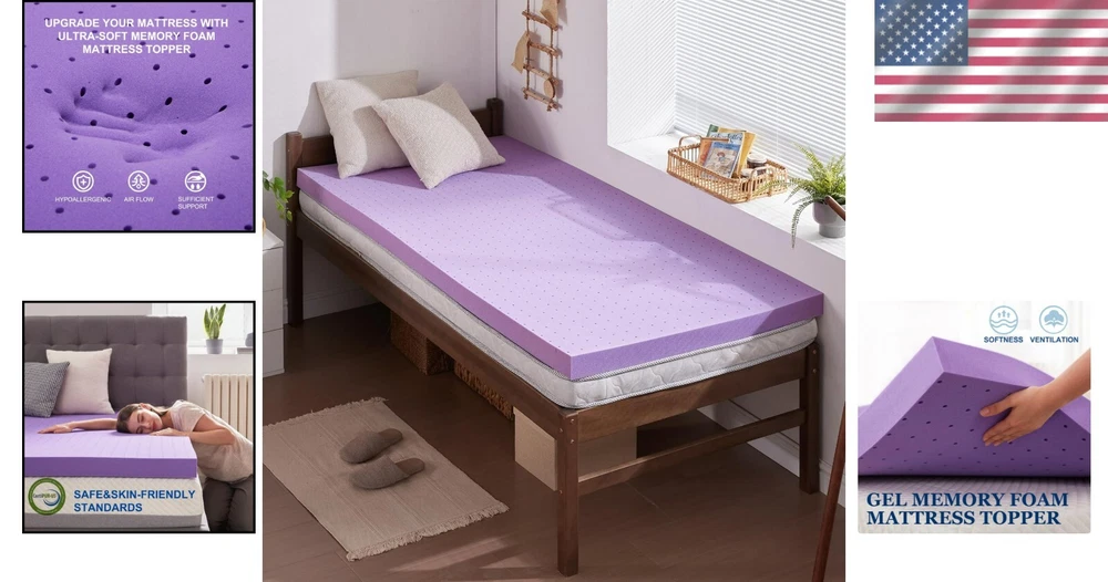 Thread Count: Not Specified gtin13: Does Not Apply Material: Memory Foam, Gel Memory Foam Brand: Unbranded Room: Bedroom Item Width: Memory Foam Mattress Topper Refill: Memory-foam, Gel GSM (Grams per Square Meter): Not Specified Item Weight: 2 Pounds Closure Type: No Closure Size: Twin Care Instructions: Spot Clean Only Style: Modern Batteries Required: No Fill Material: Gel Foam Features: Cooling, Breathable, Durability, Pressure Relief, Ventilated Department: Adults Shape: Rectangular Age Range (description): Adult Type: Mattress Topper Insulation: Cool UPC: Does Not Apply Special Feature: Durability,foldable Product Care Instructions: Spot Clean Only Fabric Type: Memory Foam Water Resistance Level: Not Water Resistant Product Dimensions: 74 X 38 X 2 Inches Color: Purple Item Length: Memory Foam Mattress Topper