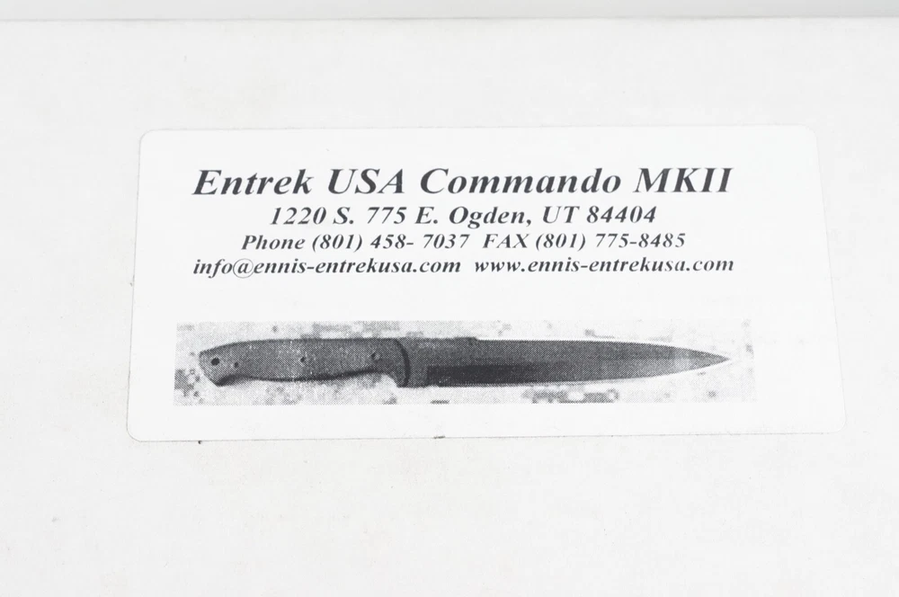 This is a black Entrek USA Commando MKII Dagger with Kydex sheath made by Ray Ennis. It is unused/new. It is my understanding that Ray Ennis retired from knife making due to health issues. Please see photo with ruler for size, only what is pictured is included. This is part of a collection of both modern and antiques knives and swords that we are selling for their owner. Please see our other listings for more fine knives. We strive to be as accurate and thorough as possible in our listings. Returns are no problem for any reason, we want you to be satisfied with your purchase. We generally ship next business day from purchase.