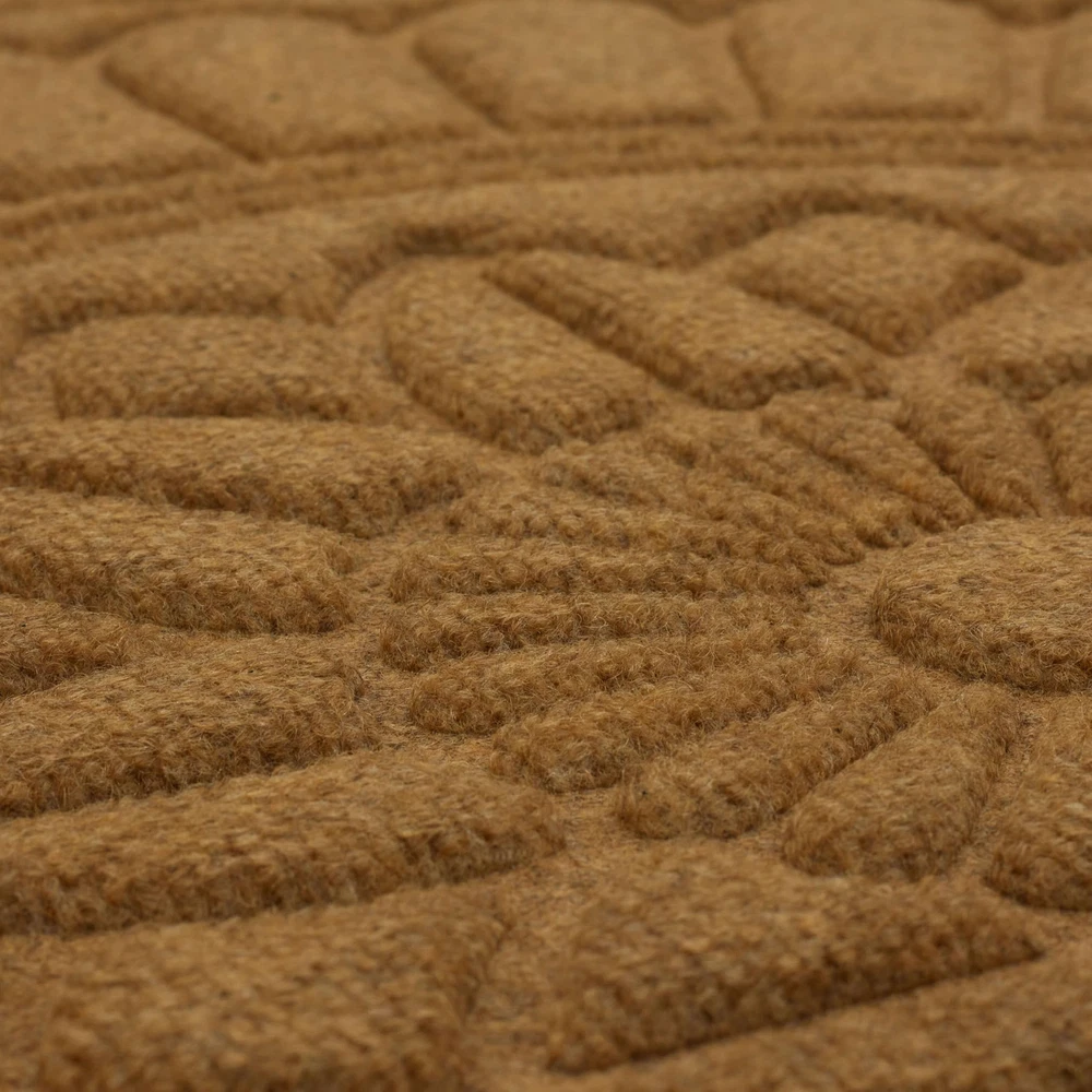Welcome your guests with the inviting charm of this stylish door mat from , showcasing a functional high/low design in rich color that complements any entryway. Perfect for both indoor and outdoor use, this resilient doormat ensures enduring durability in high-traffic areas and spaces exposed to the elements. Crafted from resilient polyester surface fiber and backed with 100% recycled rubber, this doormat presents an environmentally conscious decor option that is more stylish than ever! The textured polyester surface fiber provides secure traction in all weather conditions, effectively absorbs excess water, and helps remove dirt from shoes before it is tracked indoors. Explore a variety of stylish designs and sizes to bring functional flair to any entryway in your home. DYNAMIC DESIGN: Innovative grooved surface design effectively removes debris from shoes, traps dirt, and channels excess water away before it is brought indoors. EXTRA GRIP: Robust rubber backing provides extra grip to help minimize doormat slipping and sliding on hard surface flooring in high traffic entryways. LOW PROFILE: Low-profile height ensures optimal functionality for any doorway by reducing tripping hazards and entryway obstructions, while allowing doors to open and close freely. EASY CARE & CLEAN: Keep your doormat looking fresh with ease: simply vacuum, sweep, shake out, or rinse off debris with a garden hose, and spot clean when needed; air dry flat. MADE IN THE USA: Proudly made in the USA of U.S. and imported polyester material and recycled rubber ensuring a top-tier sustainable option for every setting.